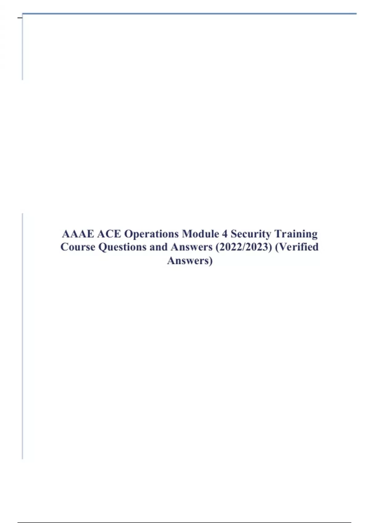 AAAE ACE Operations Module 4 Security Training Course Questions and Answers (2022/2023) (Verified Answers)