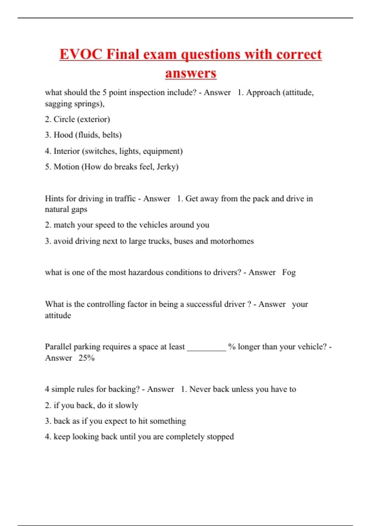 evoc final exam questions with correct answers