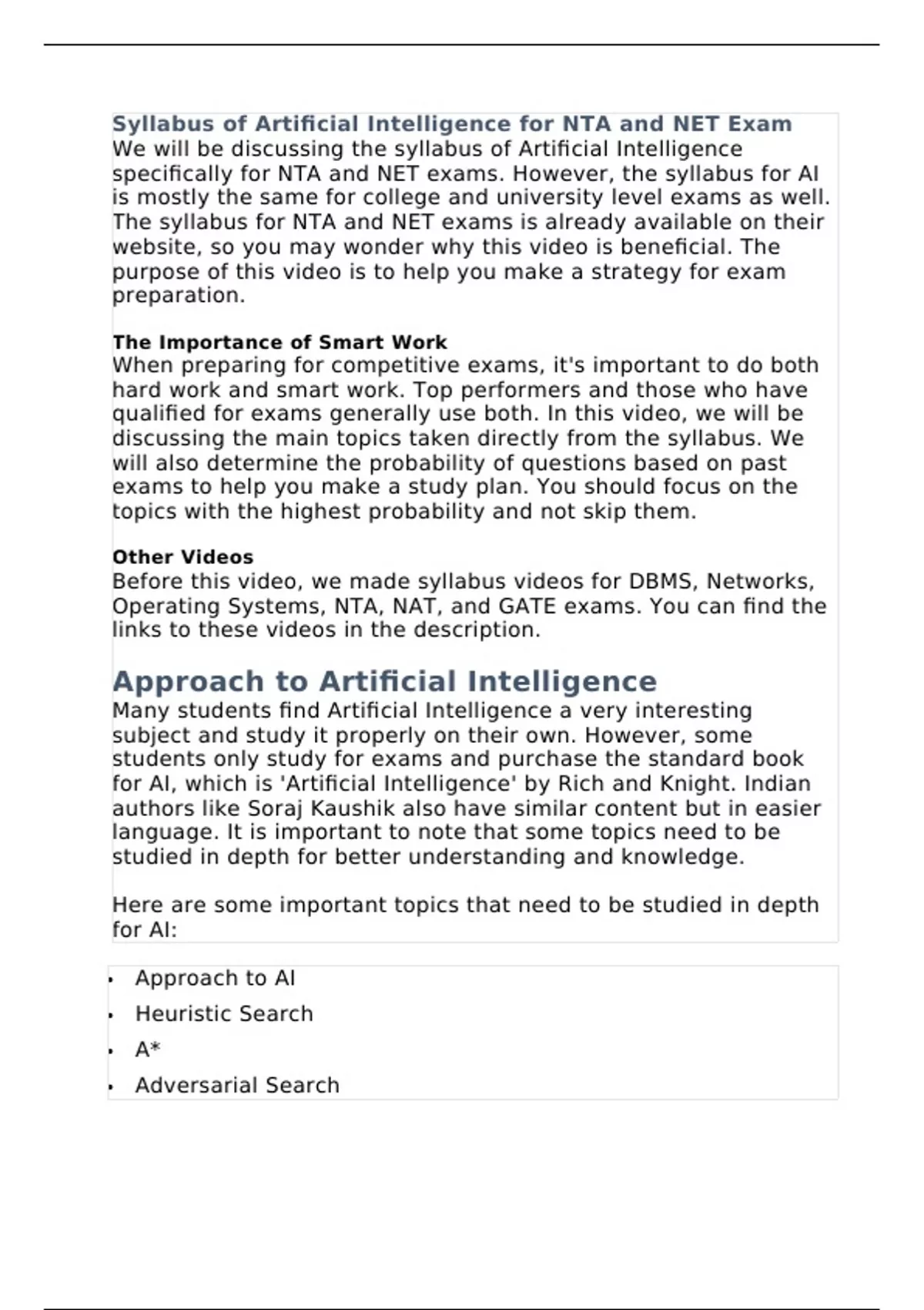 specifically for NTA and NET exams. However, the syllabus for AI