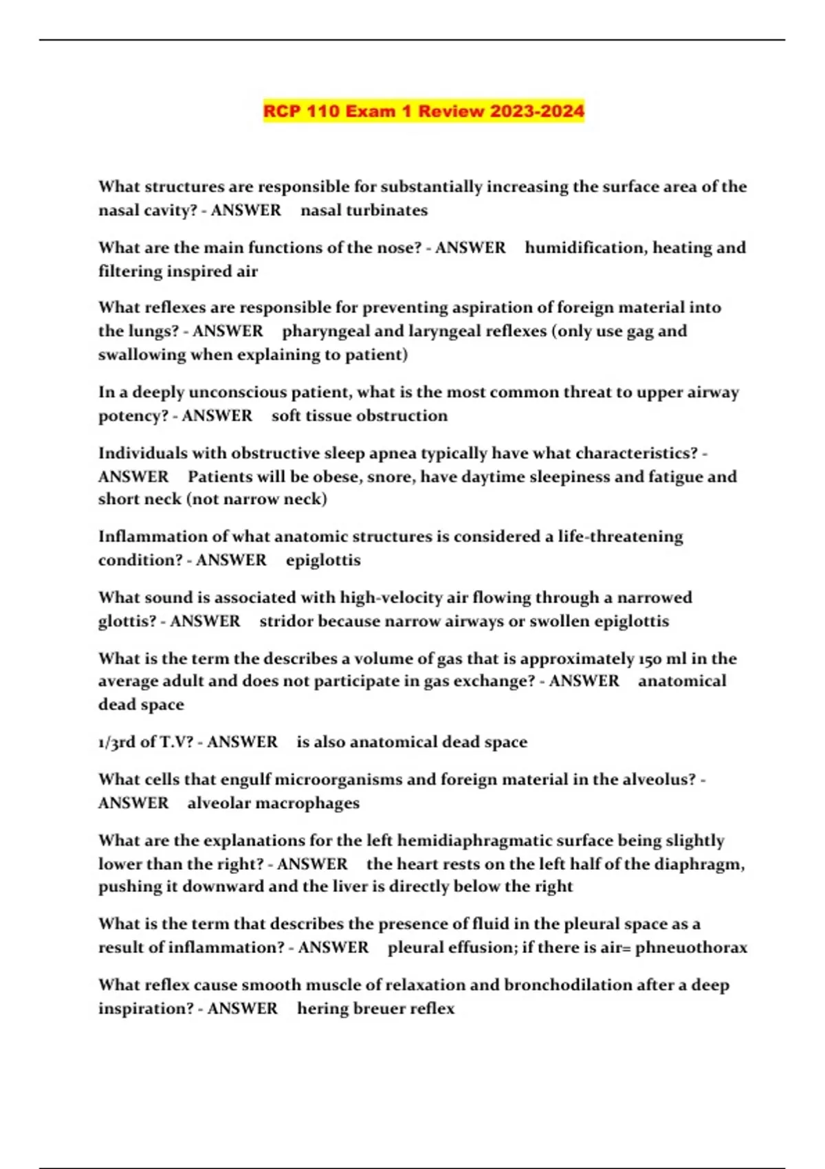 RCP 110 Exam 1 Review ...
