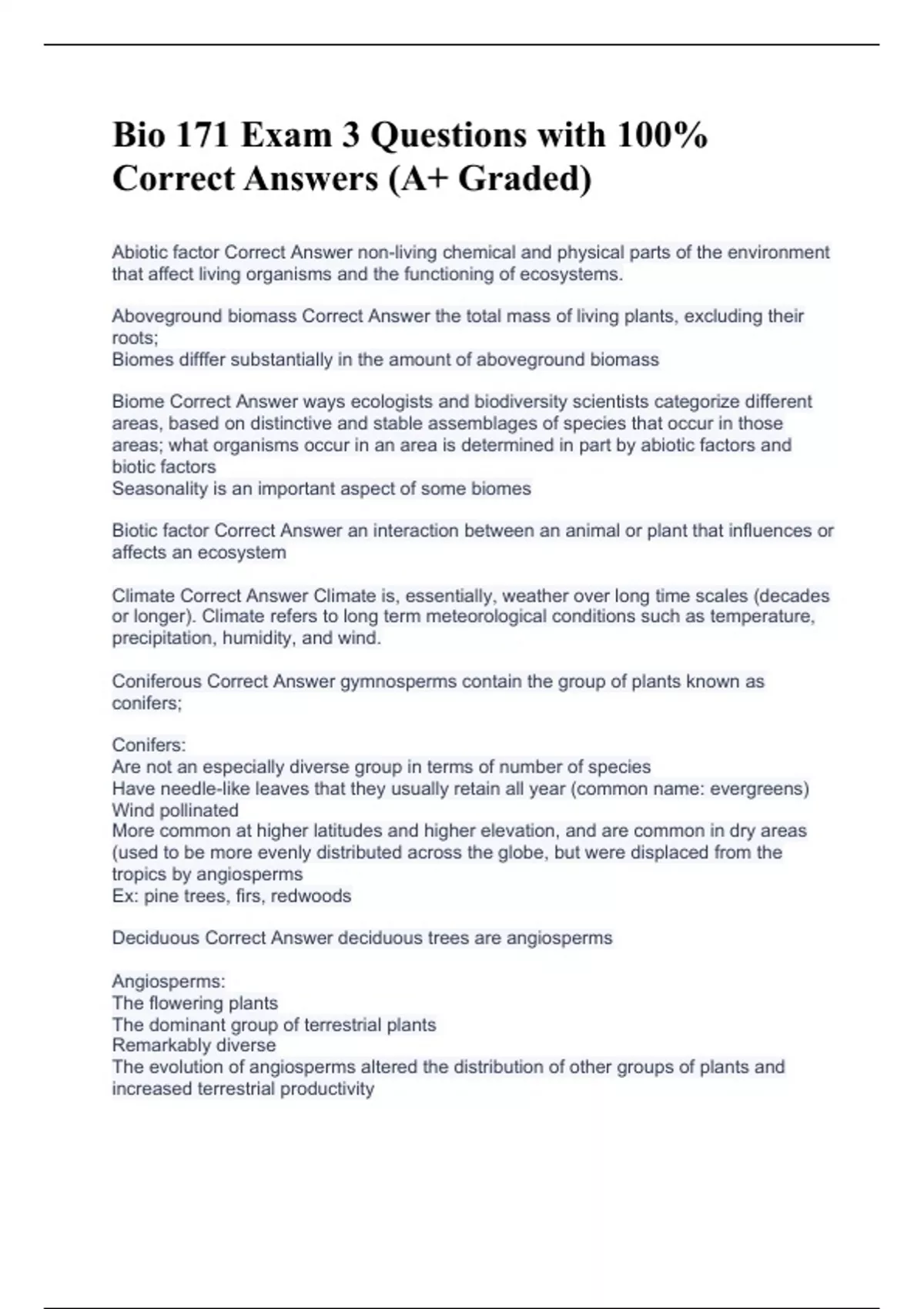 Bio 171 Exam 3 Questions with 100% Correct Answers (A+ Graded)