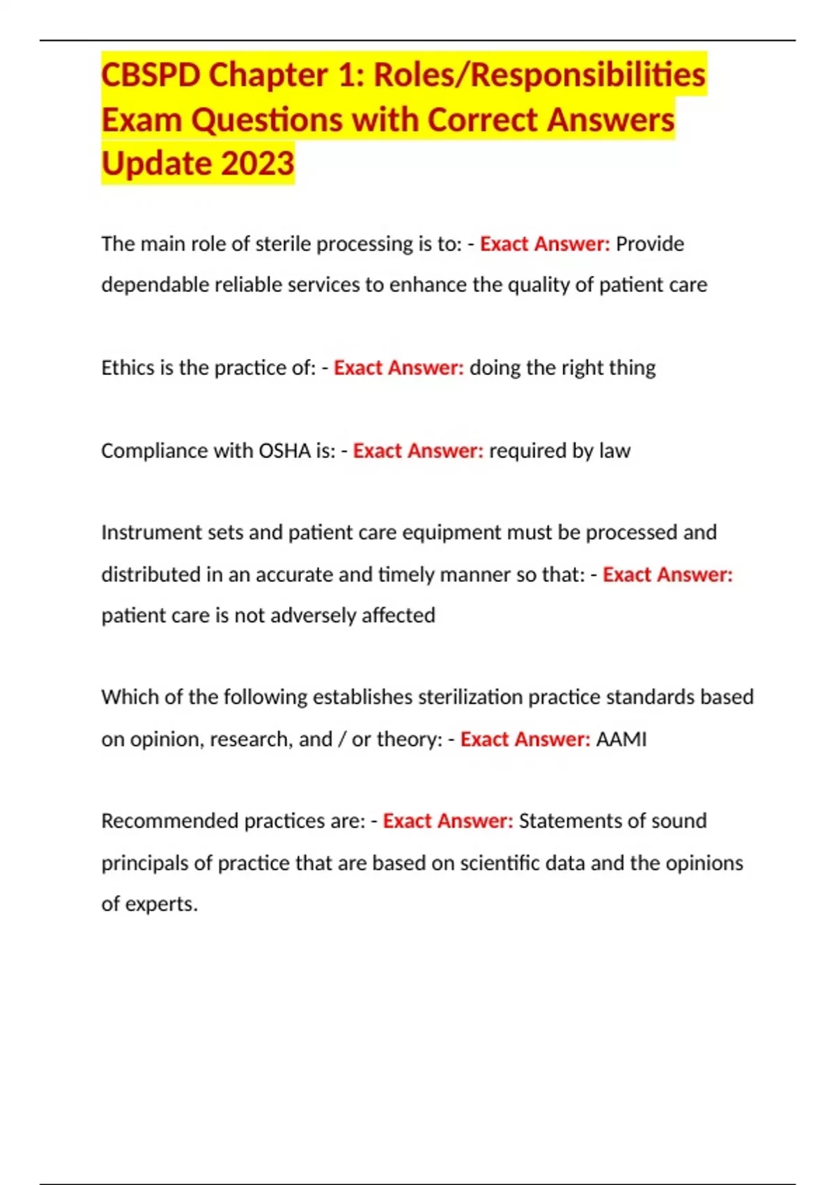 The main role of sterile processing is to: - Exact Answer: Provide