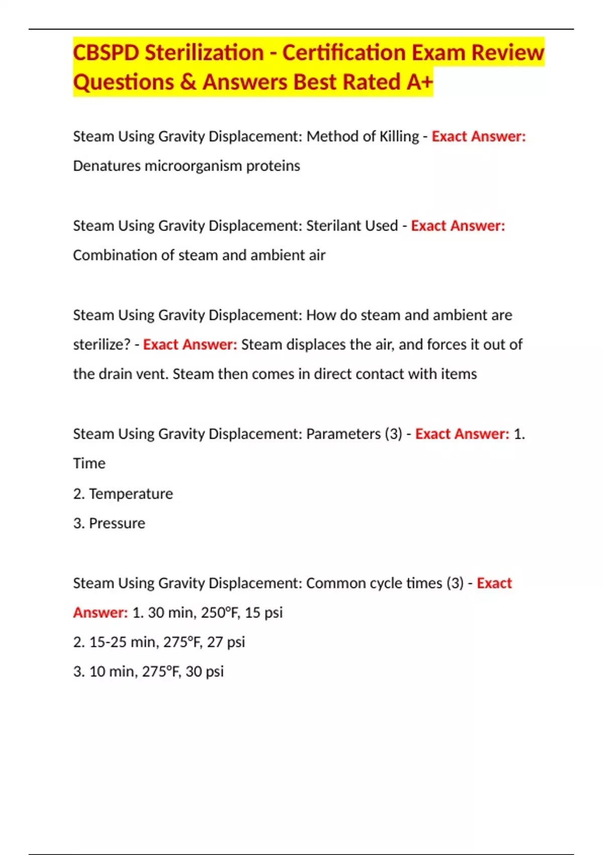 CBSPD Sterilization - Certification Exam Review Questions & Answers Best Rated A+