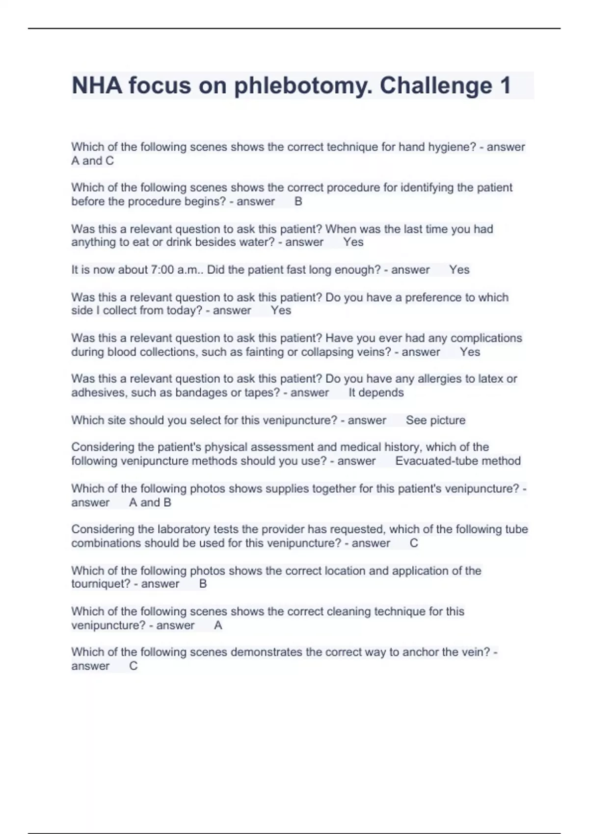 NHA focus on phlebotomy Questions with correct Answers