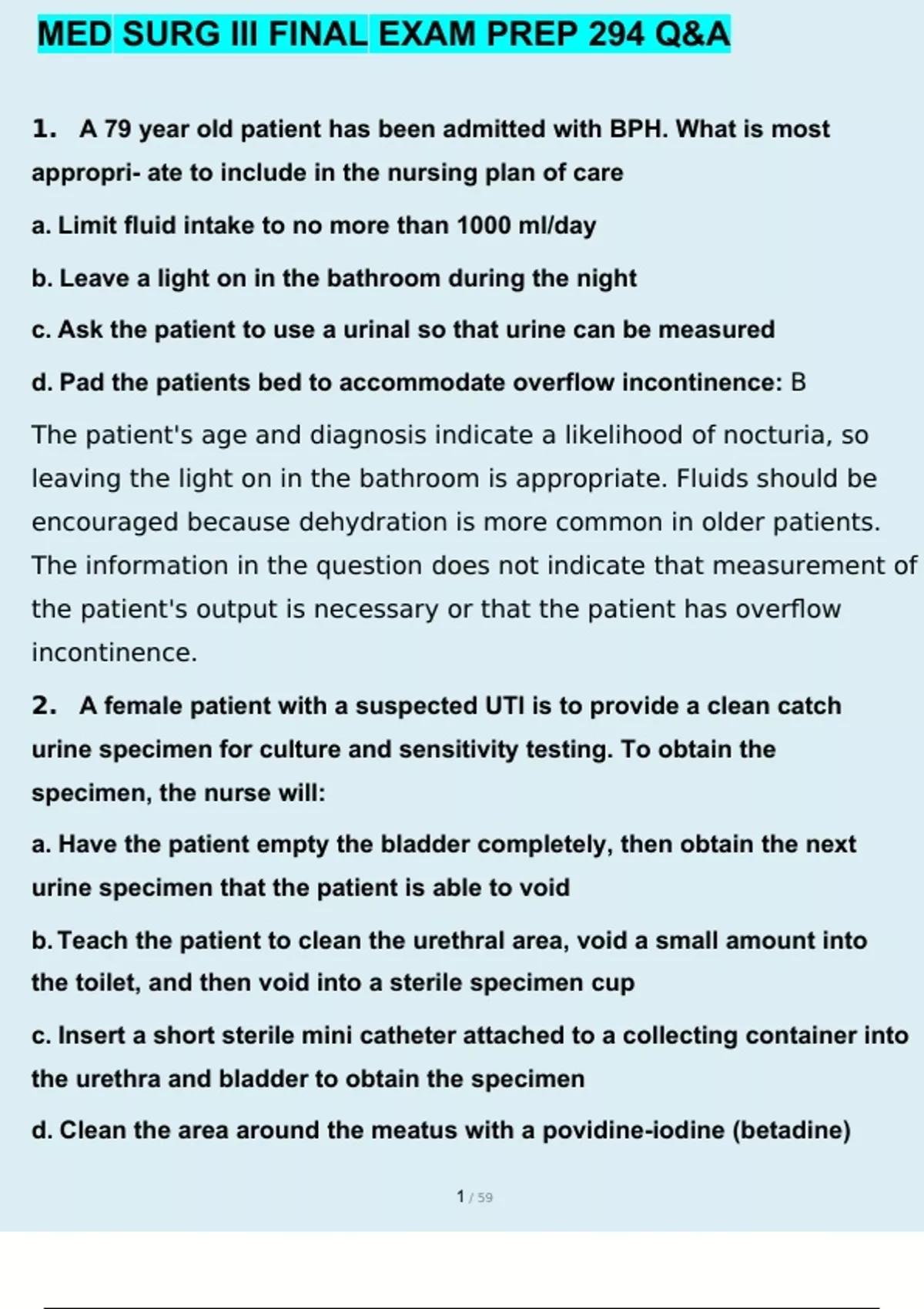 HESI MED SURG III FINAL EXAM PREP 294 QUESTIONS AND ANSWERS GRADED A+