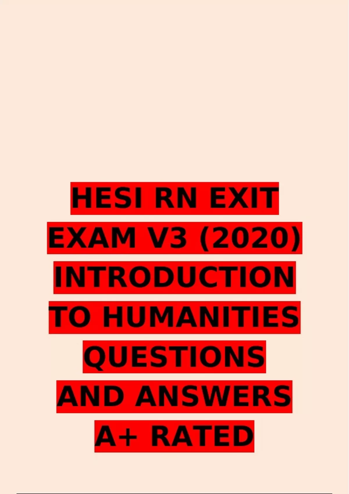 HESI RN EXIT EXAM V3 (2020) INTRODUCTION TO HUMANITIES QUESTIONS AND ANSWERS A+ RATED