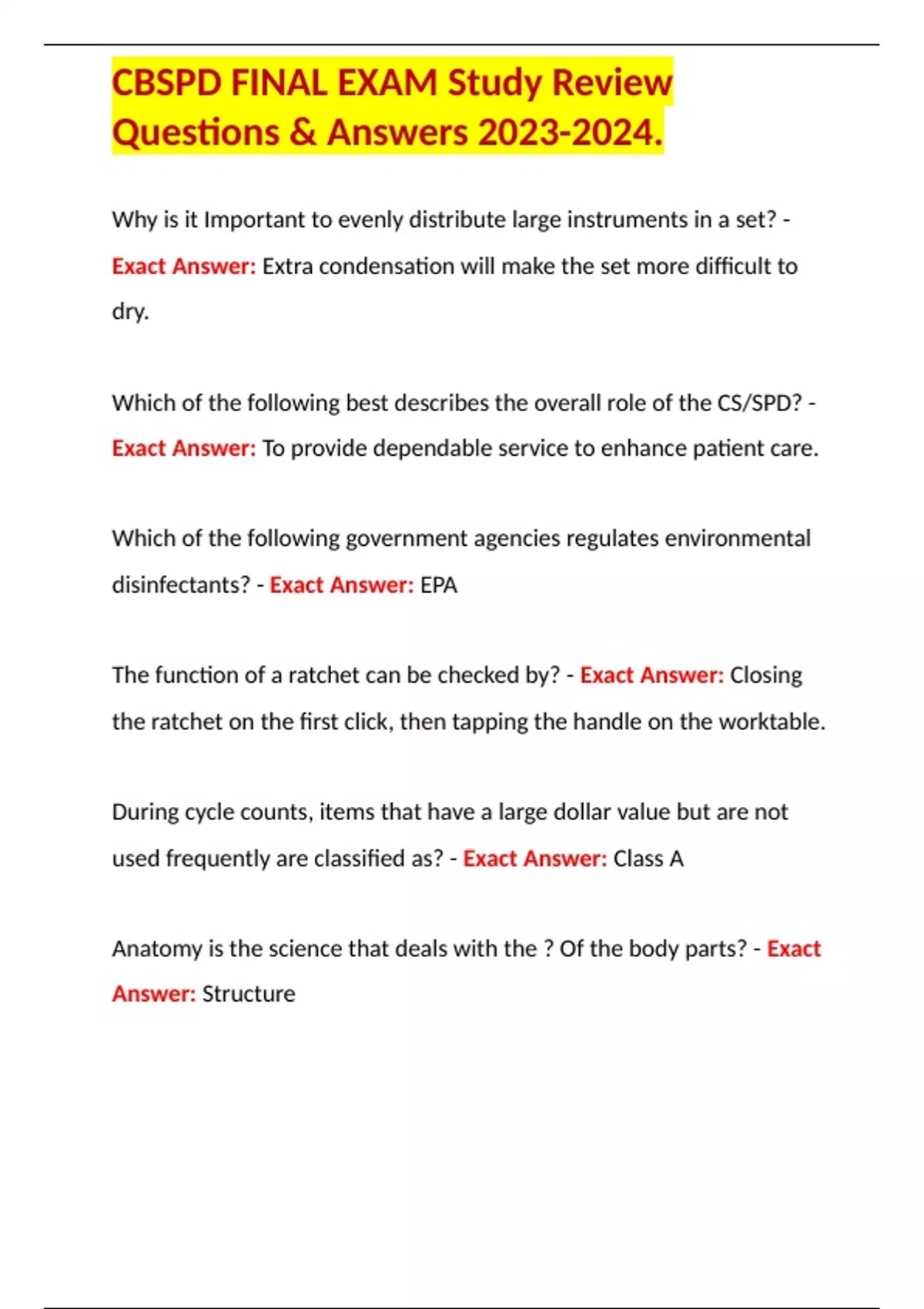 CBSPD FINAL EXAM Study Review Questions & Answers .