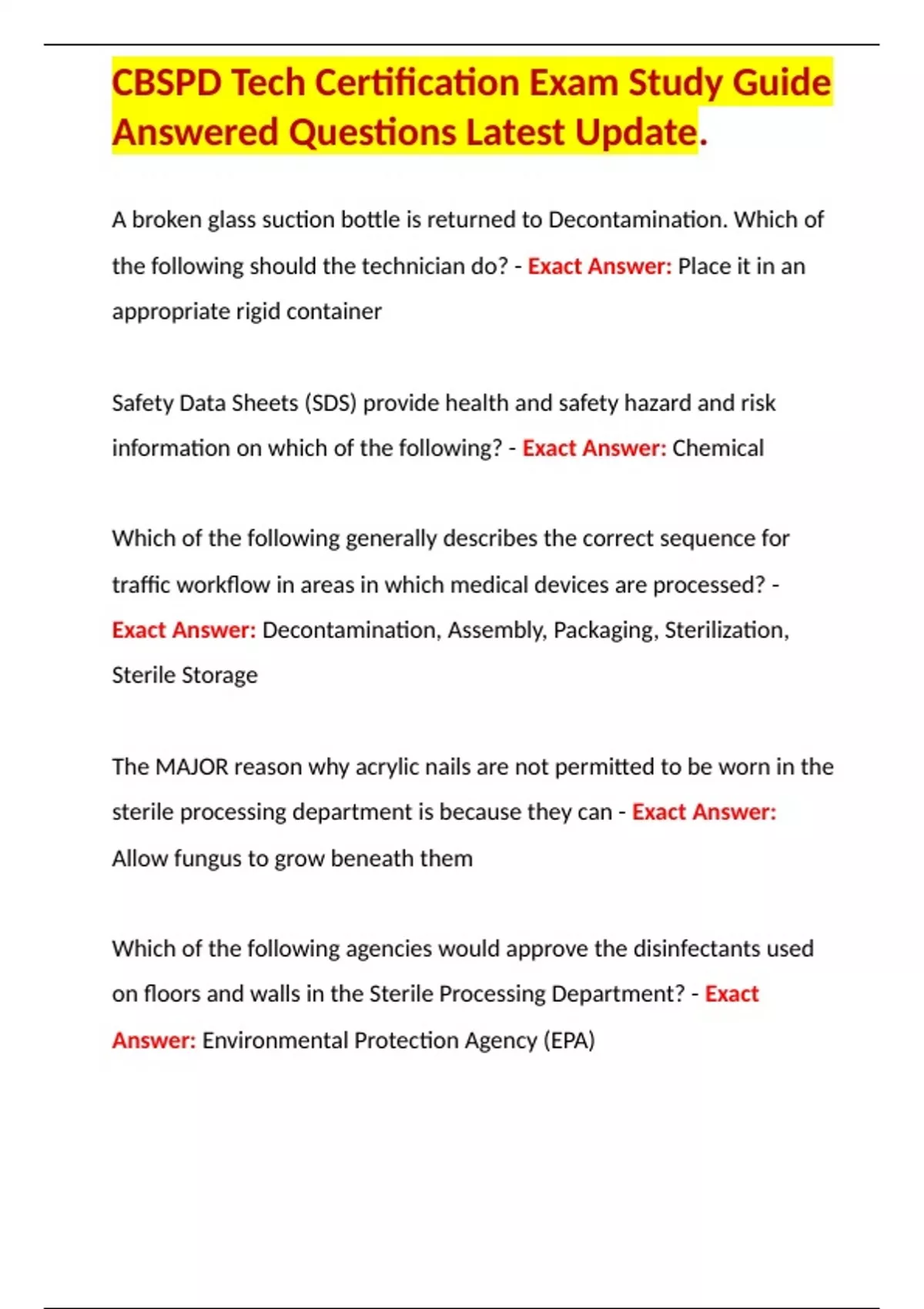 Exact Answer: Decontamination, Assembly, Packaging, Sterilization,