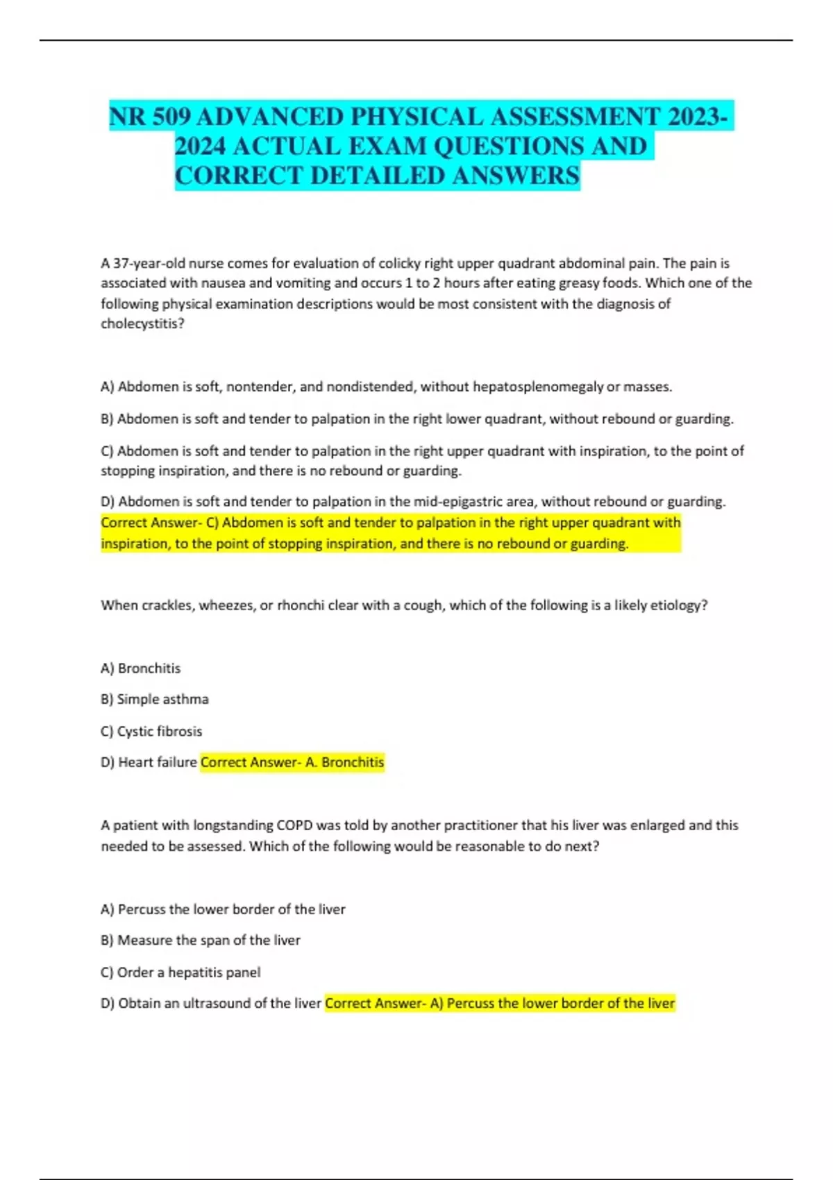 NR 509 ADVANCED PHYSICAL ASSESSMENT ACTUAL EXAM QUESTIONS AND CORRECT ANSWERS