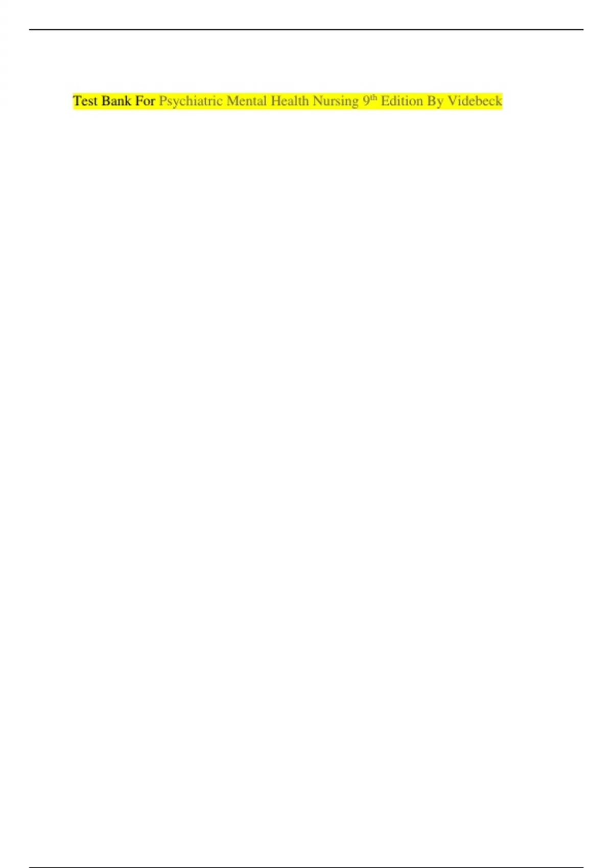 Test Bank For Psychiatric Mental Health Nursing 9th Edition By Videbeck