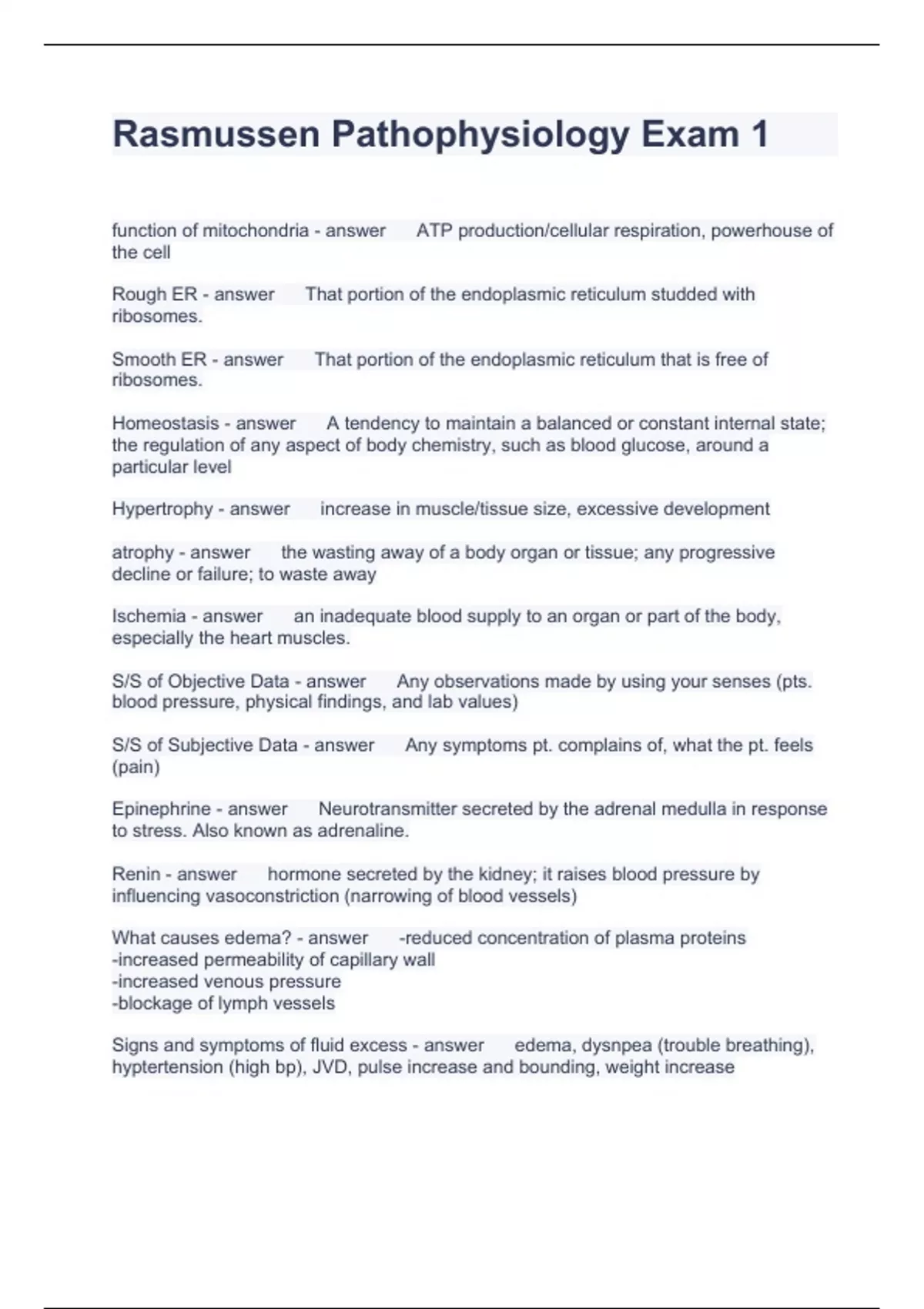 Rasmussen Pathophysiology Exam 1 Questions with correct Answers