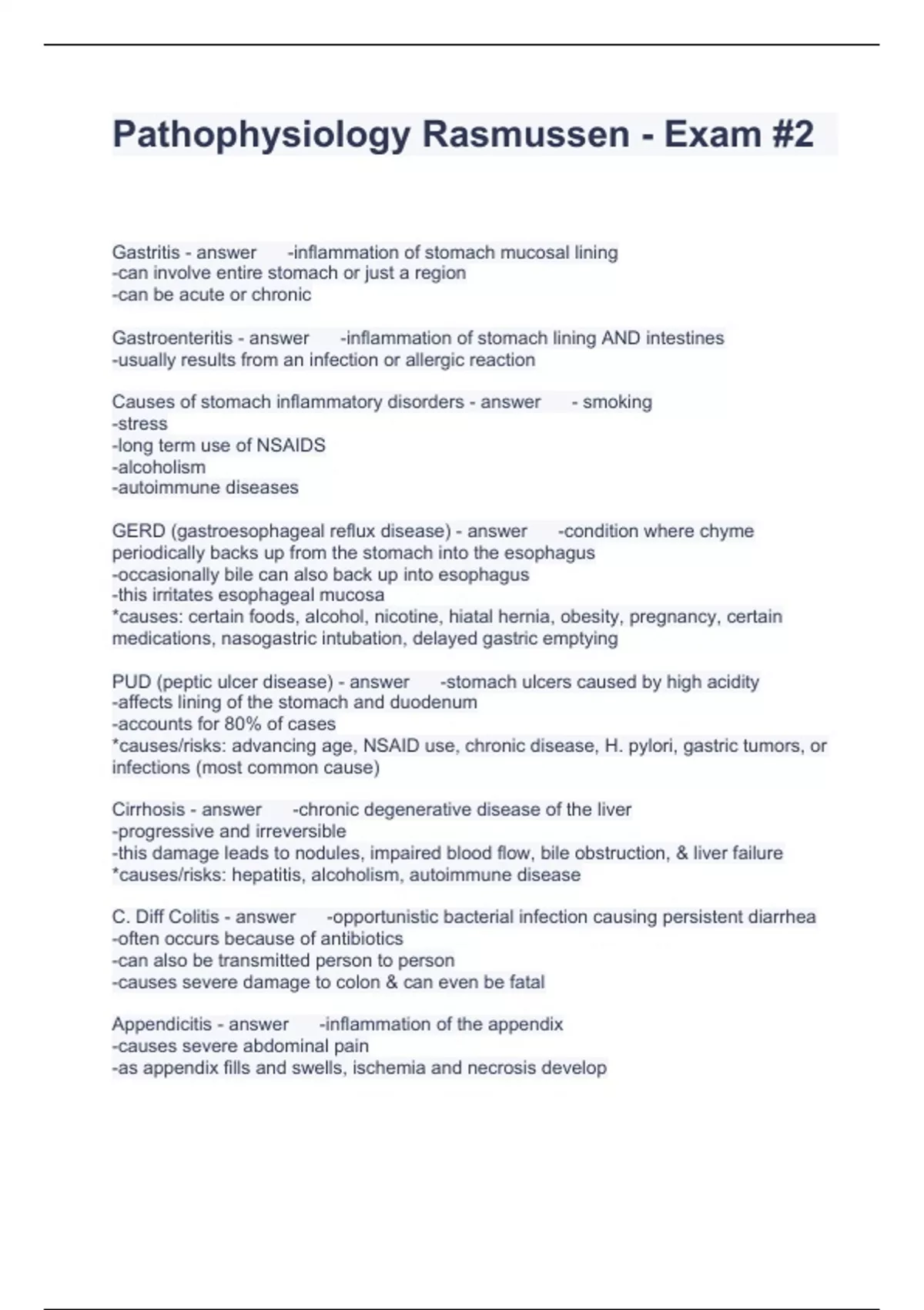 Pathophysiology Rasmussen Questions with correct Answers