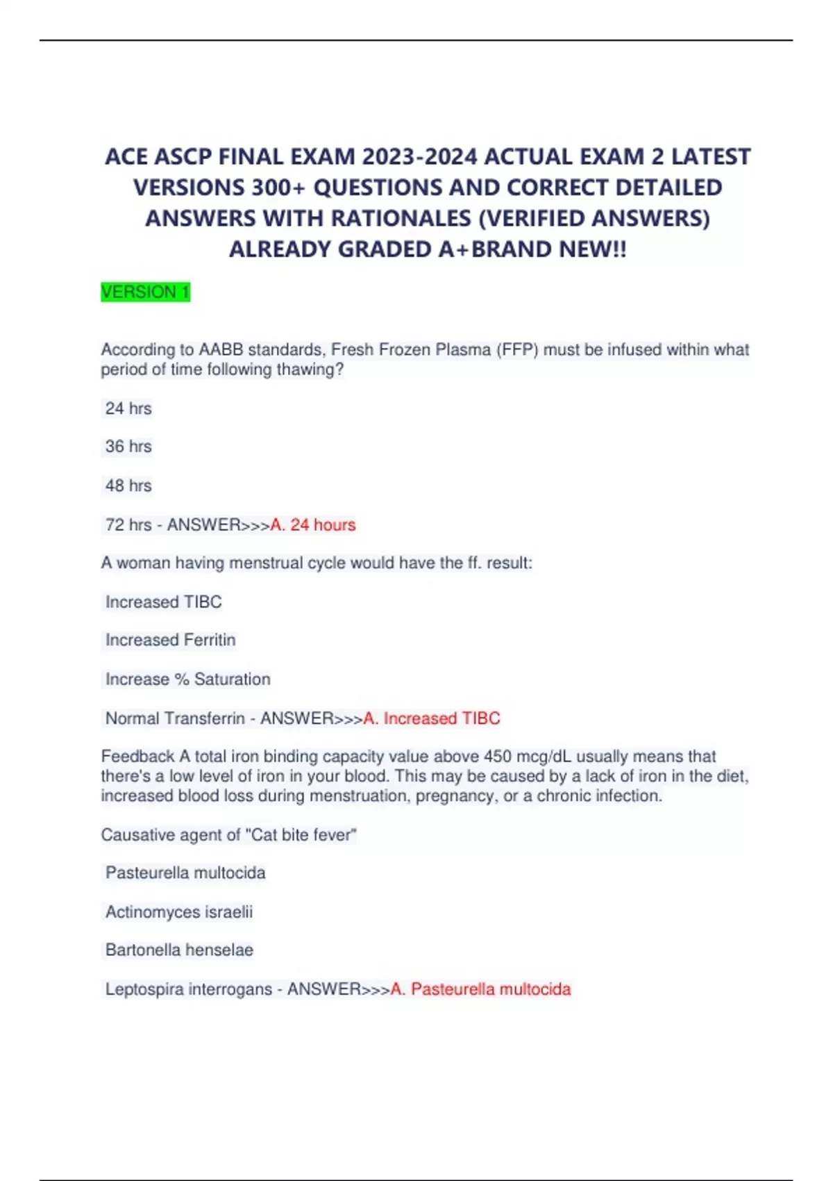 ACE ASCP FINAL EXAM ACTUAL EXAM 2 LATEST VERSIONS 300+ QUESTIONS AND CORRECT ANS