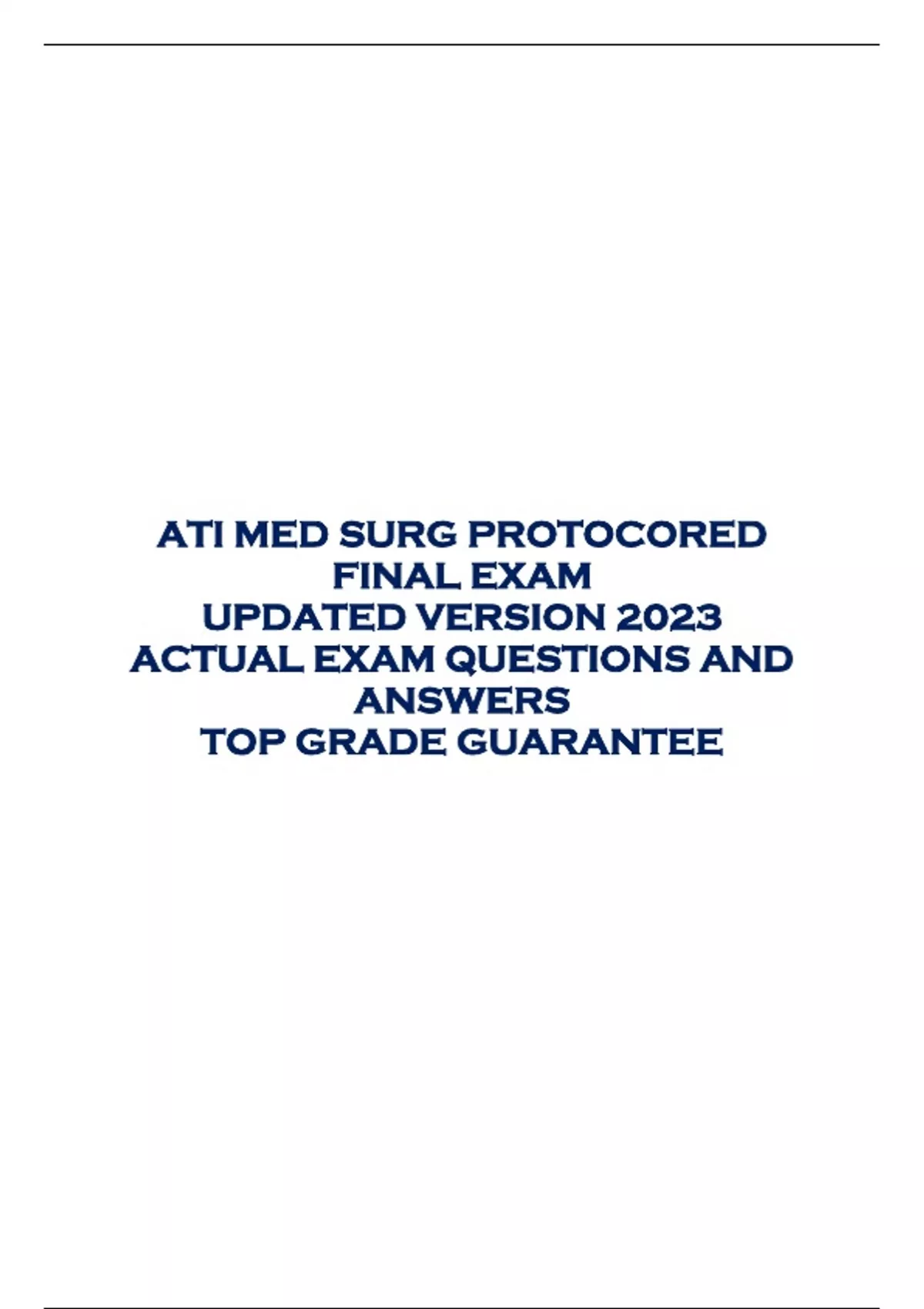 ATI MED SURG PROTOCORED FINAL EXAM UPDATED VERSION 2023 ACTUAL EXAM QUESTIONS AND ANSWERS TOP GRADE GUARANTEE