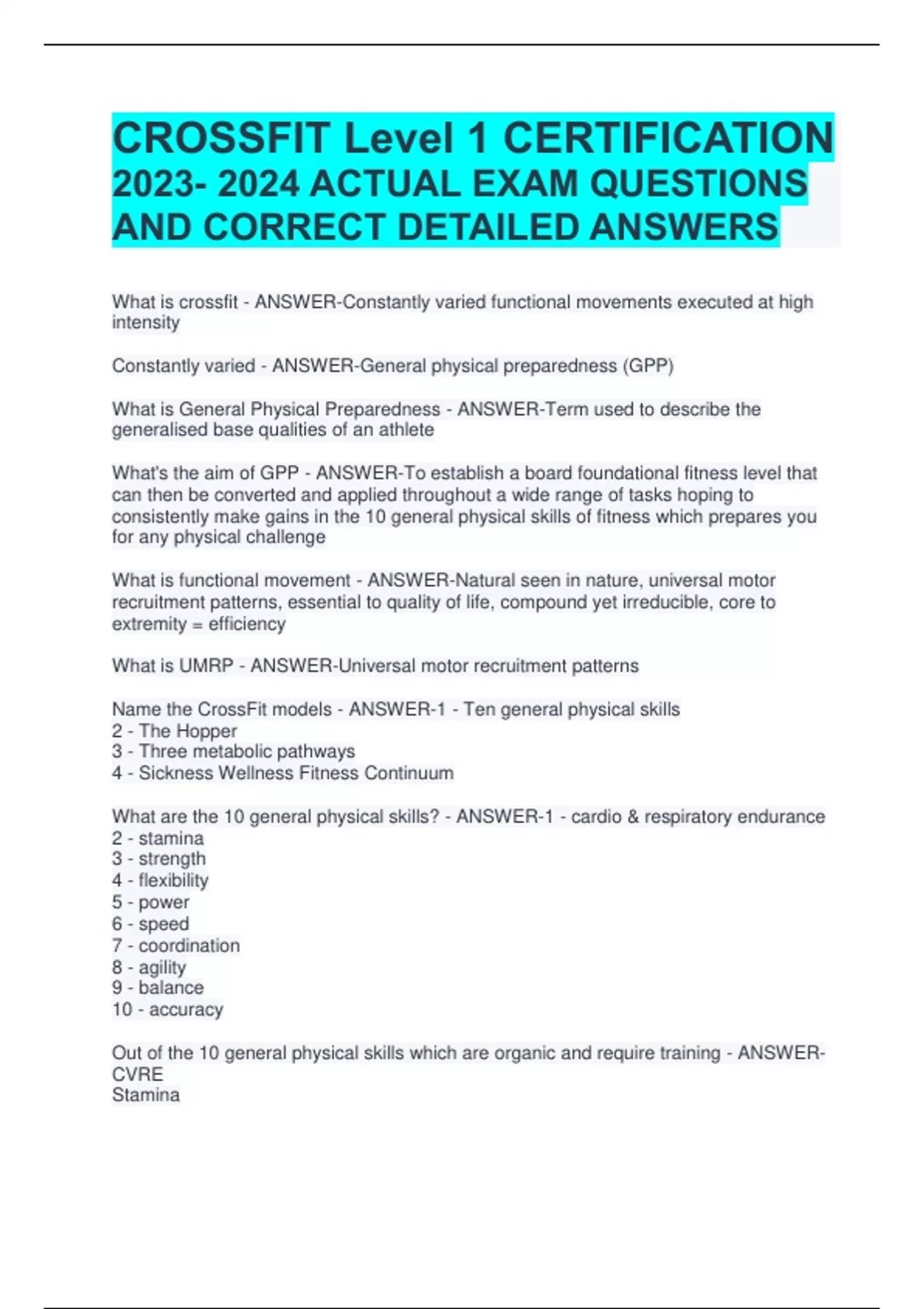 CROSSFIT Level 1 CERTIFICATION ACTUAL EXAM QUESTIONS AND CORRECT ANSWERS