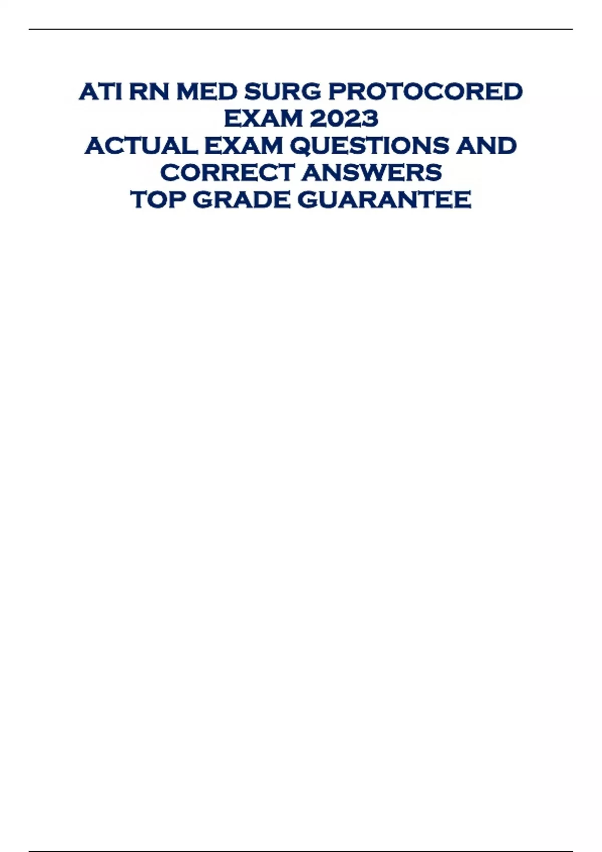 ATI RN MED SURG PROTOCORED EXAM 2023 ACTUAL EXAM QUESTIONS AND CORRECT ANSWERS TOP GRADE GUARANTEE