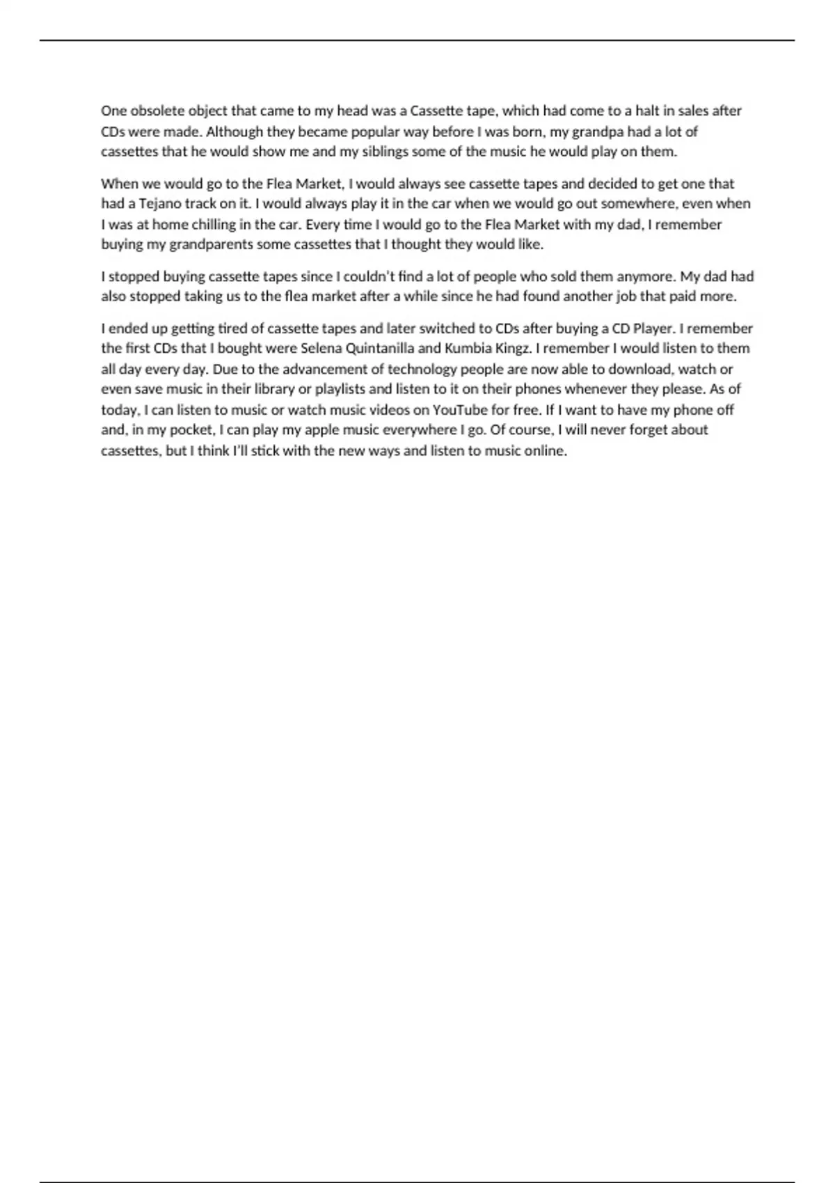 In this assignment document, I talk about cassette tapes and how different technology has changed.