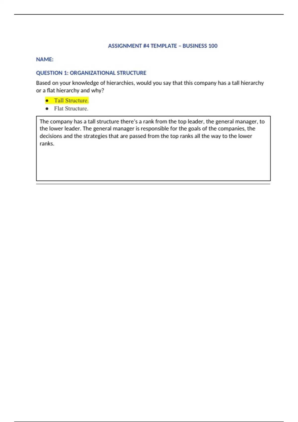 Lecture notes of 4 pages for the course BUS 100 at Strayer University Online (Company heirarchy's)