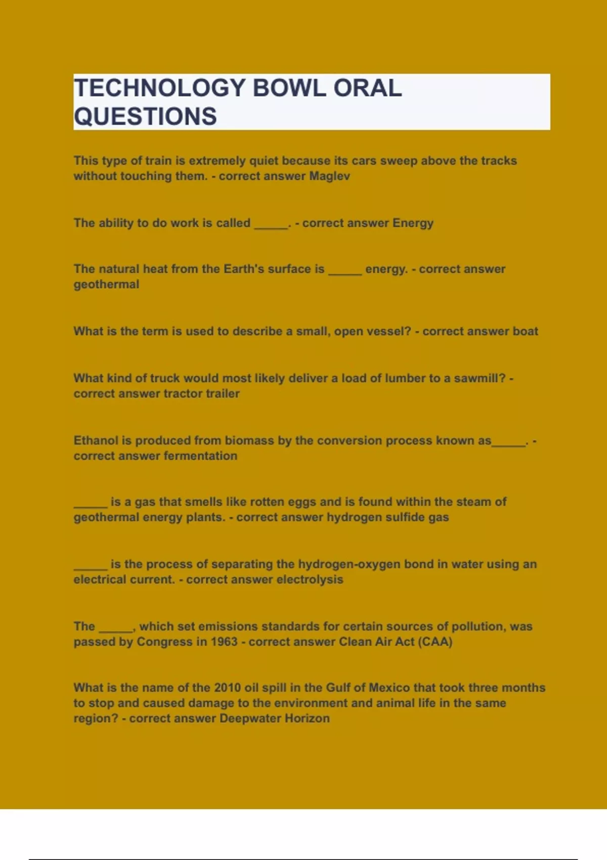 TECHNOLOGY BOWL ORAL QUESTIONS|2023/2024 UPDATE|SOLVED|GRADED A+|DOWNLOAD TO PASS