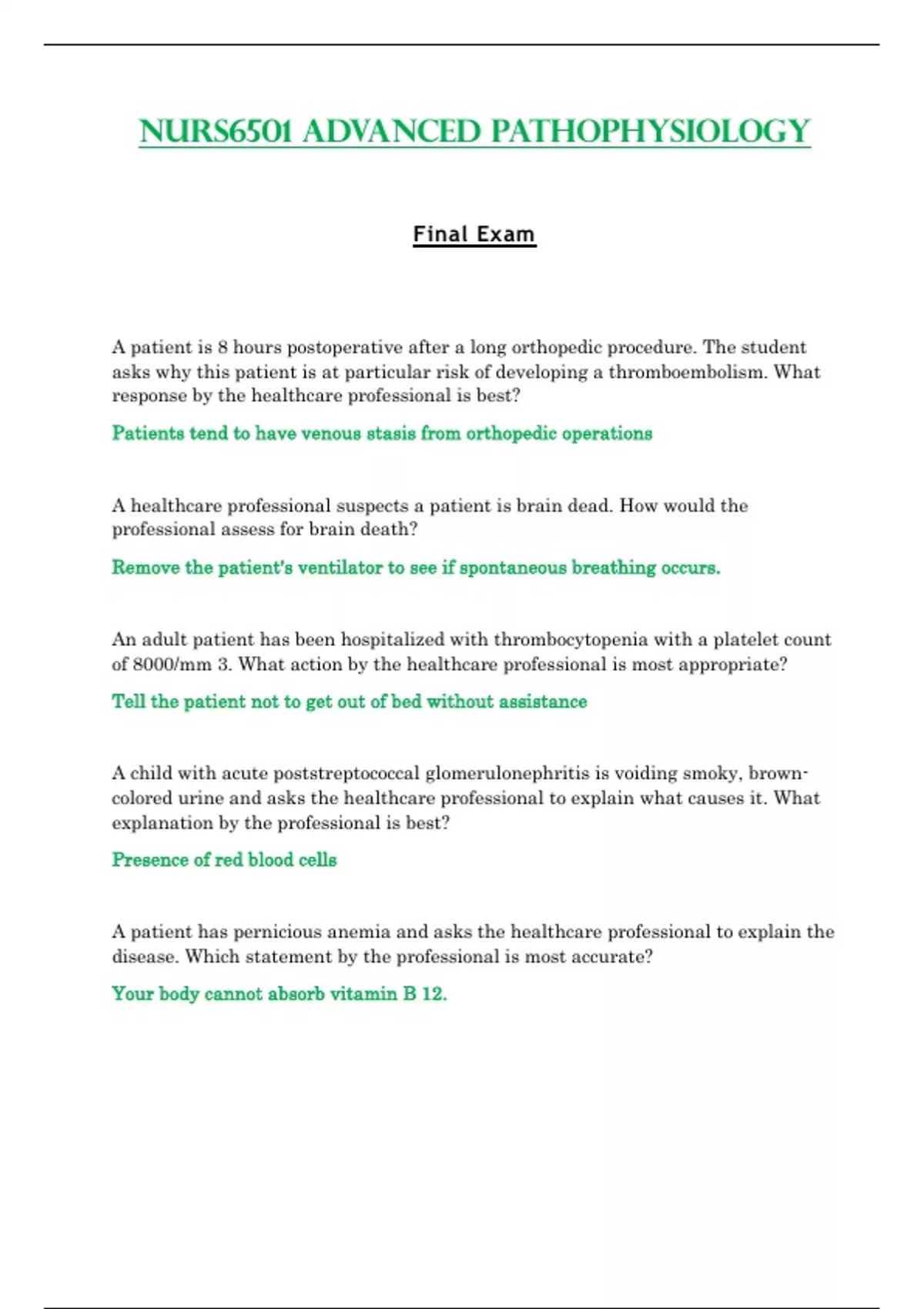 Final Exam - NURS6501 / NURS 6501 (Latest 2023 / 2024) : Advanced Pathophysiology - Walden