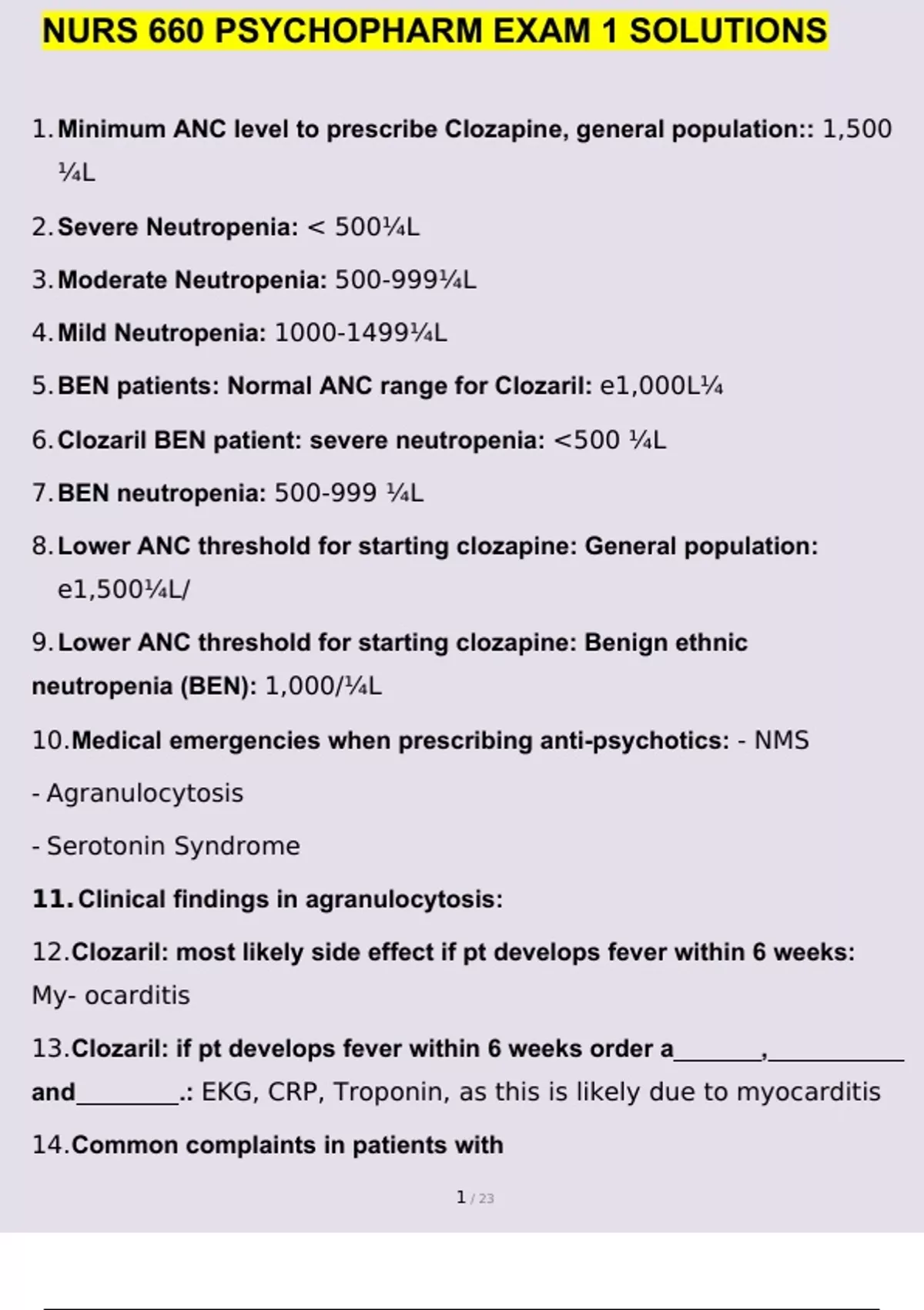 NURS 660 PSYCHOPHARM EXAM 1 SOLUTIONS QUESTIONS AND ANSWERS GRADED A+