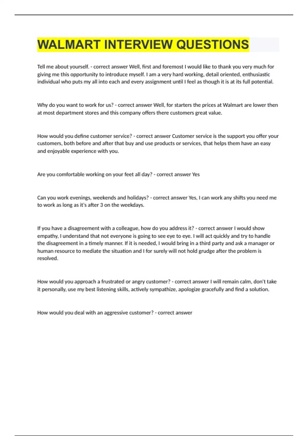 WALMART INTERVIEW QUESTIONS|2023/24 UPDATE|GRADED A+