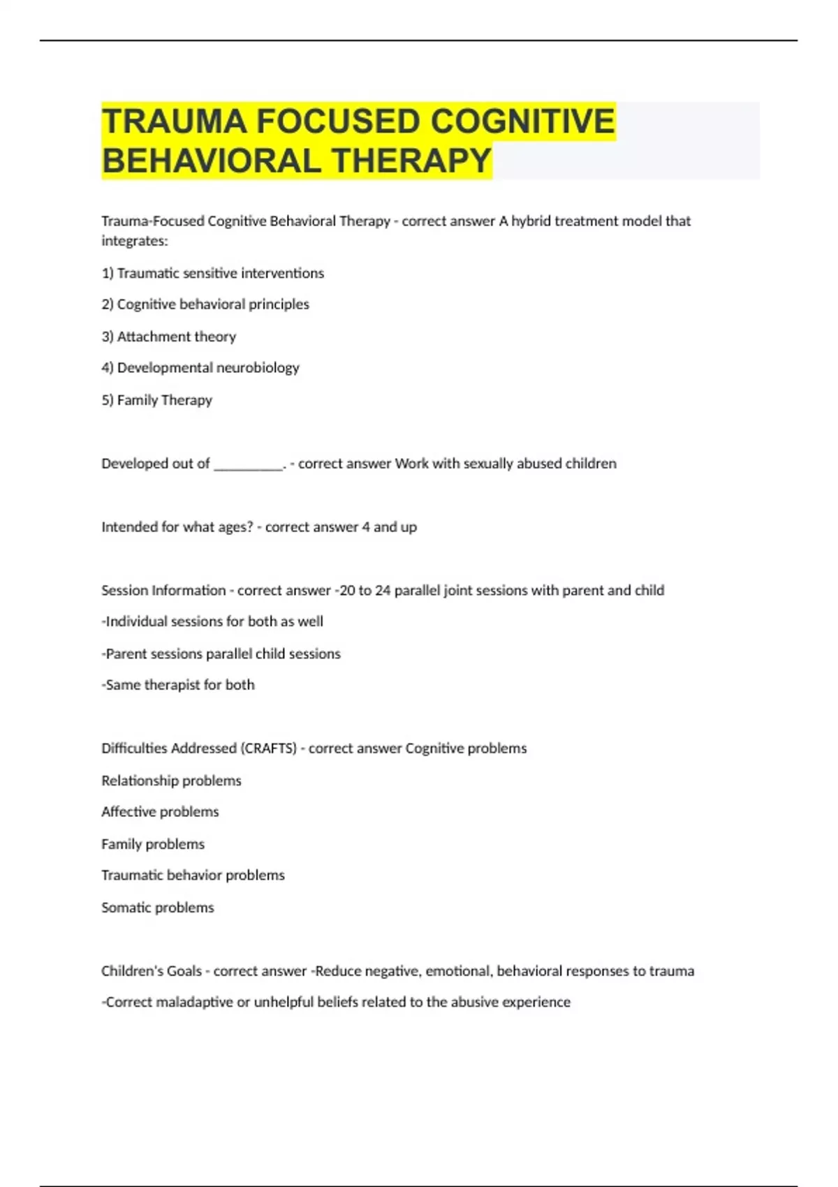 TRAUMA FOCUSED COGNITIVE BEHAVIORAL THERAPY|2023/24 UPDATE|GRADED A+