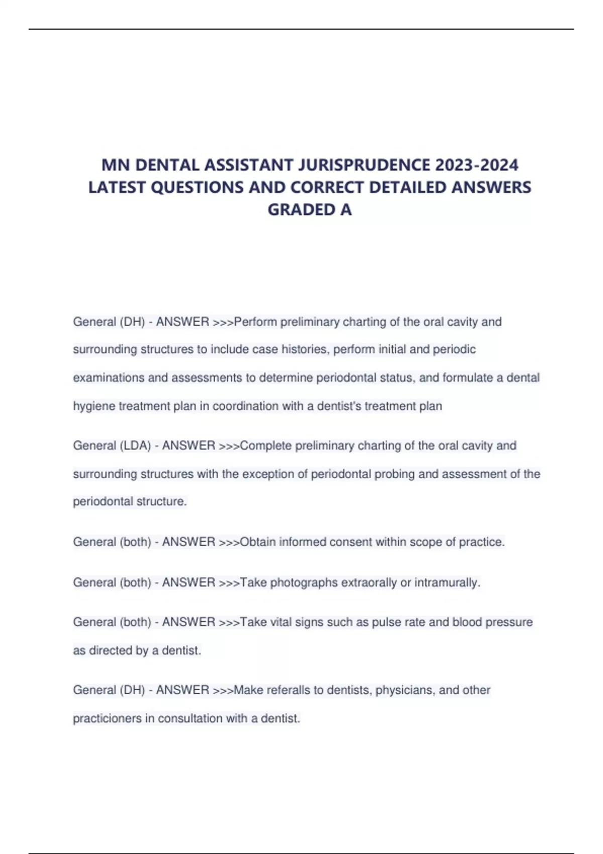MN DENTAL ASSISTANT JURISPRUDENCE LATEST QUESTIONS AND CORRECT DETAILED ANSWERS