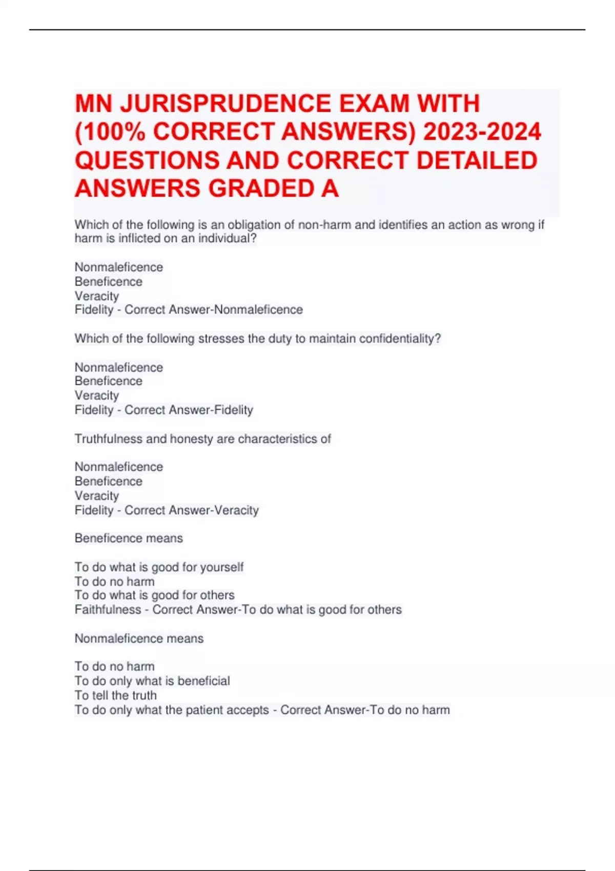MN JURISPRUDENCE EXAM WITH (100% CORRECT ANSWERS) QUESTIONS AND CORRECT ANSWERS