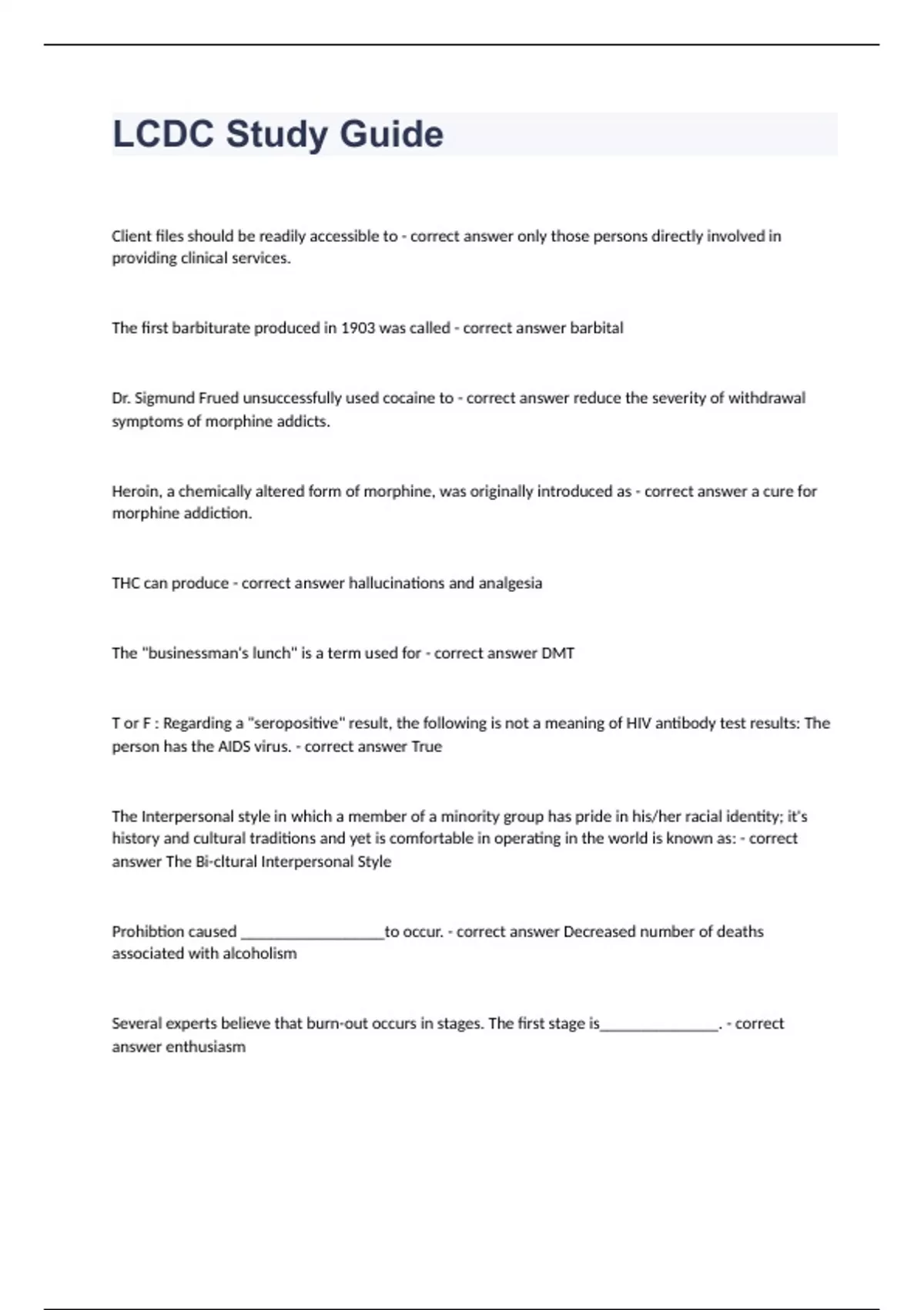 Exam of 15 pages for the course LCDC at LCDC (LCDC Study Guide)