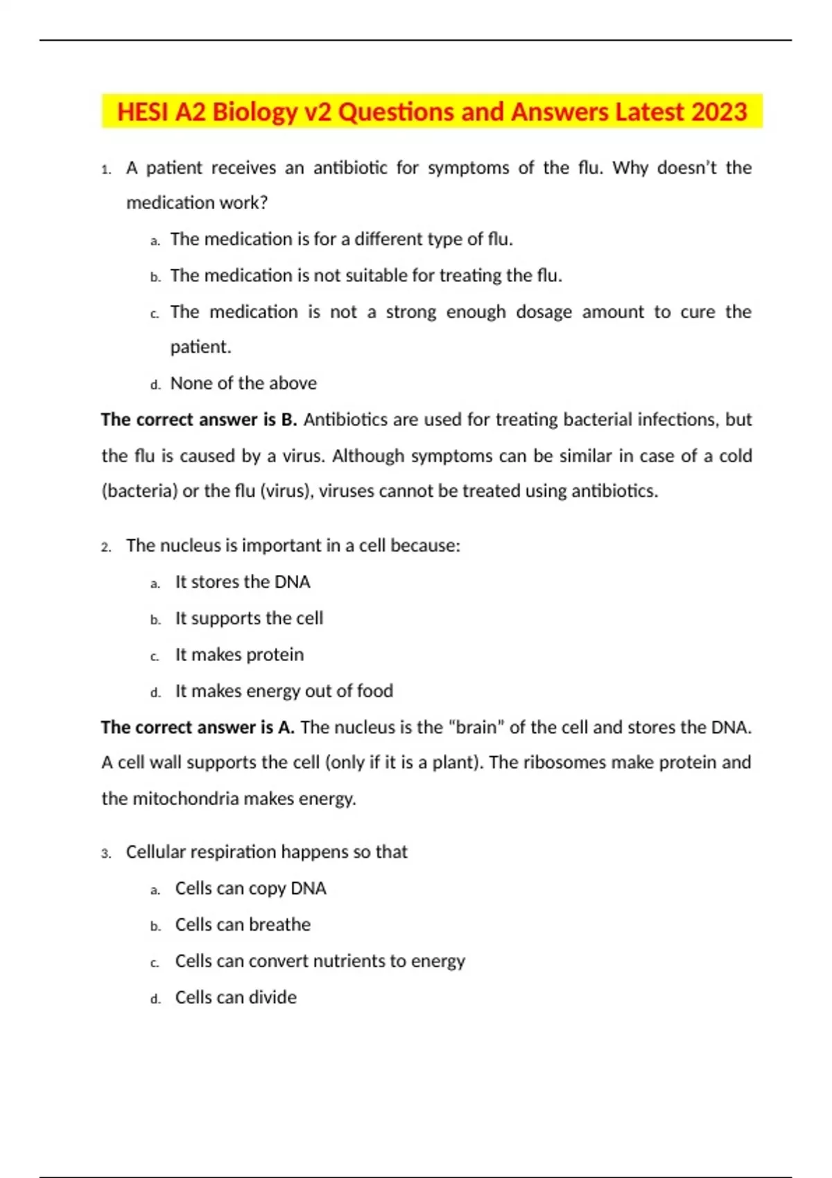 - HESI A2 Biology v2