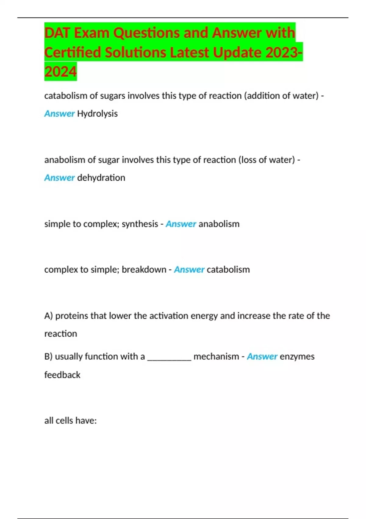 DAT Exam Questions and Answer with Certified Solutions Latest Update