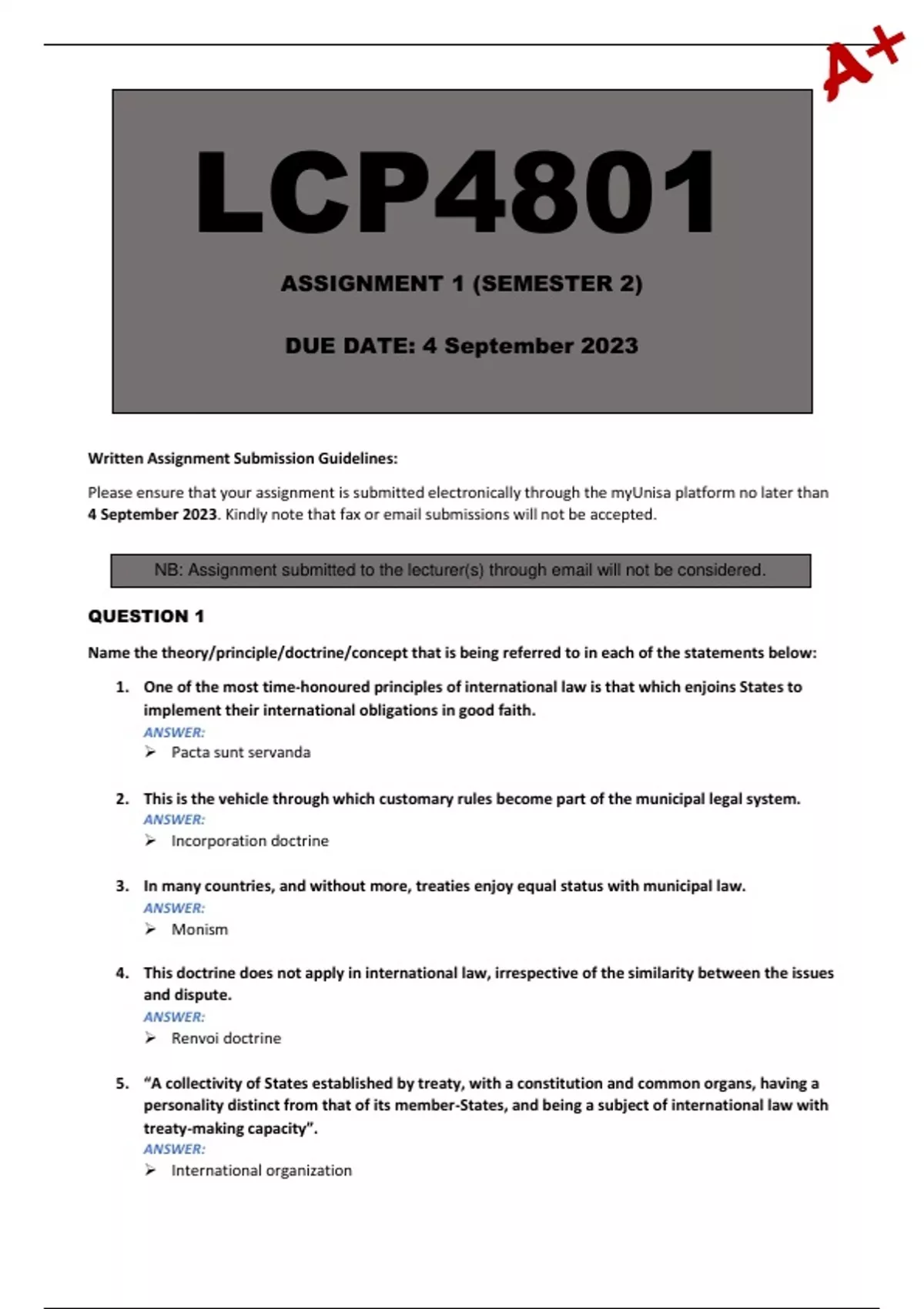 Please ensure that your assignment is submitted electronically through the myUnisa platform no later than