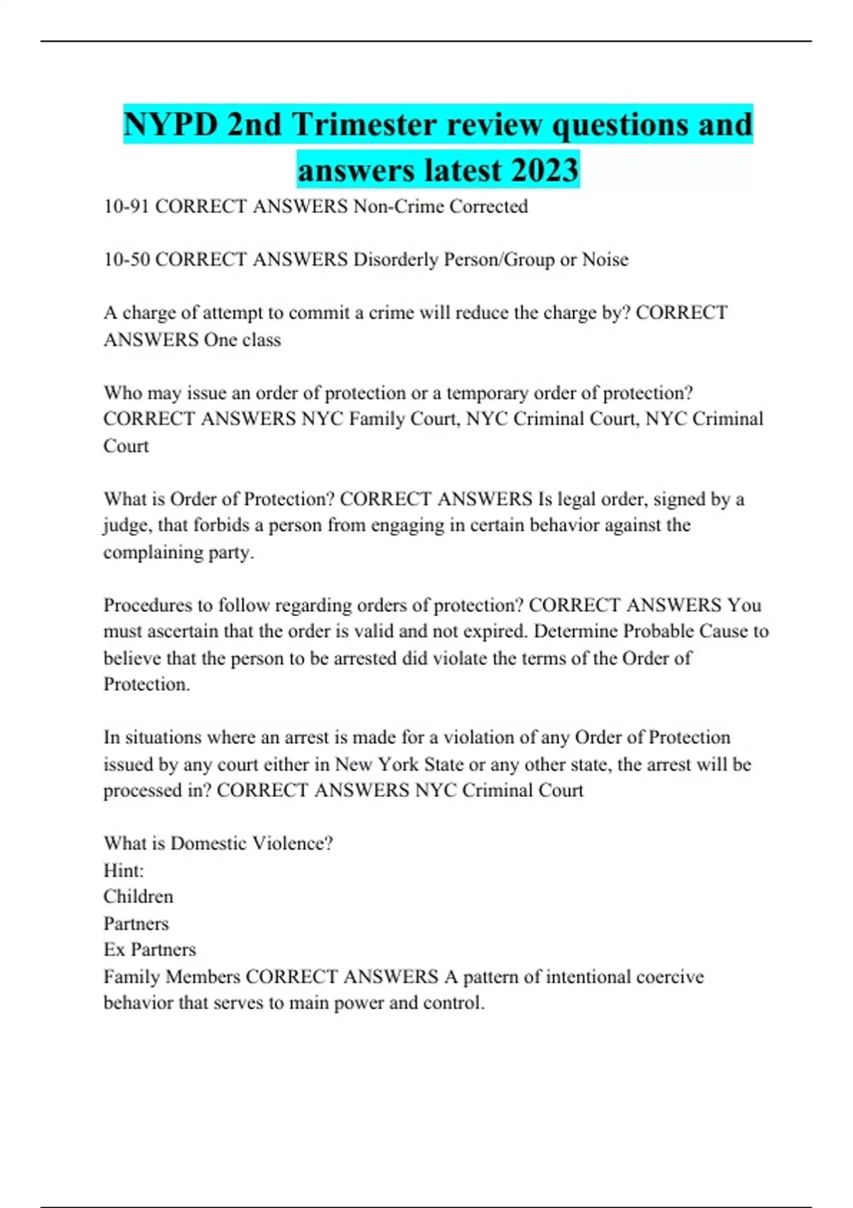 NYPD 2nd Trimester review questions and answers latest 2023