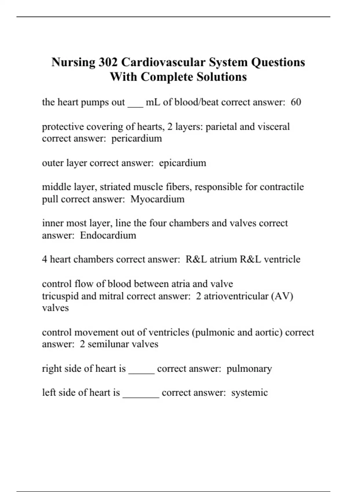 Nursing 302 Cardiovascular System Questions With Complete Solutions