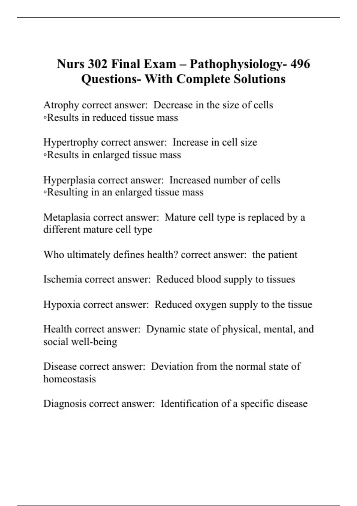Nurs 302 Final Exam – Pathophysiology- 496 Questions- With Complete Solutions
