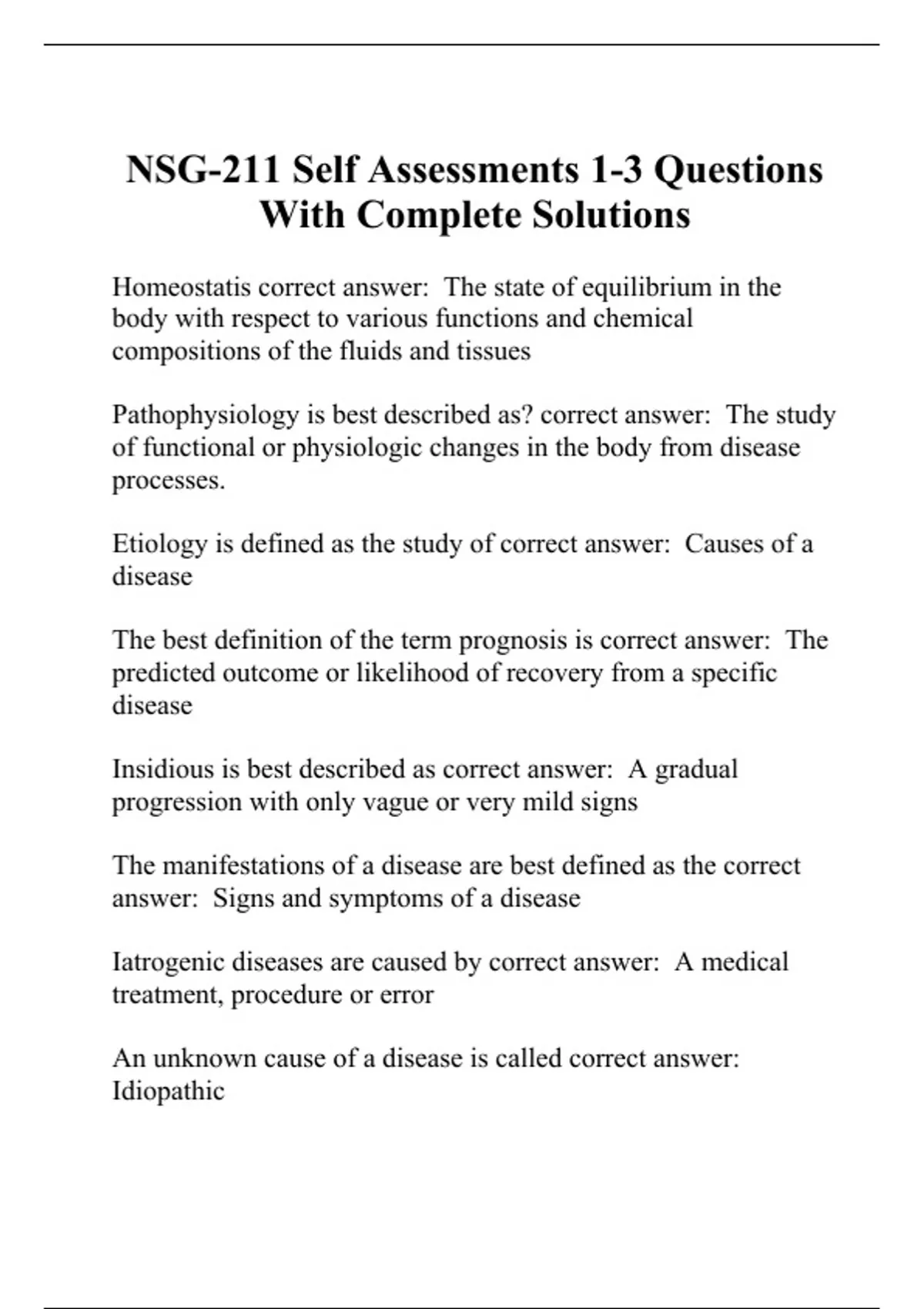 NSG-211 Self Assessments 1-3 Questions With Complete Solutions