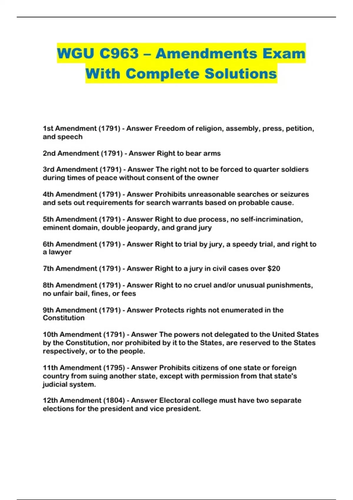 WGU C963 – Amendments Exam With Complete Solutions...