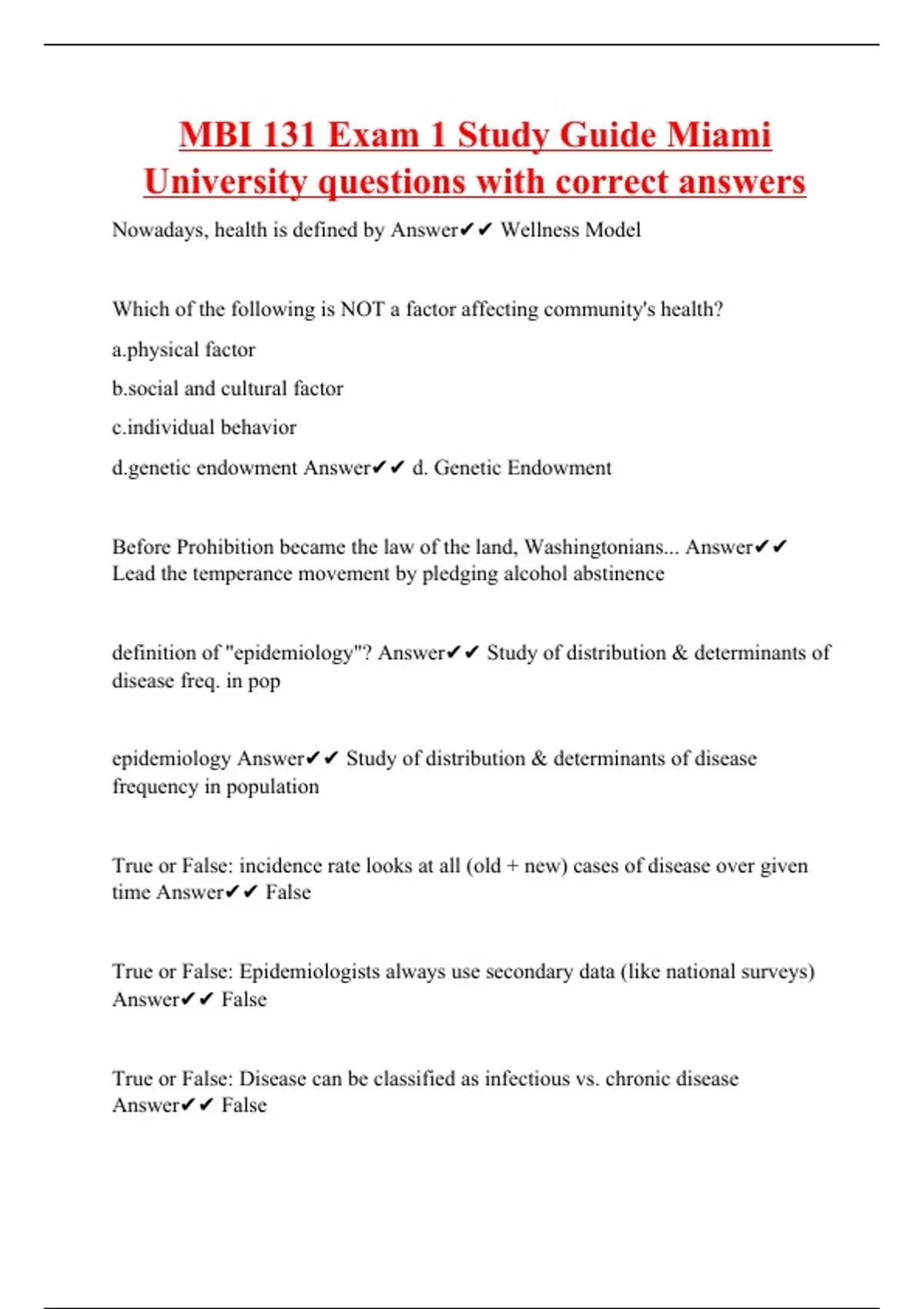 MBI 131 Exam 1 Study Guide Miami University questions with correct answers