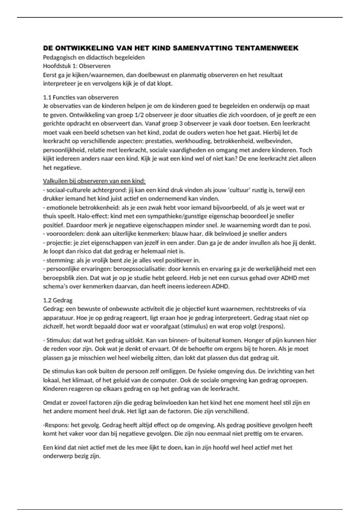 DE ONTWIKKELING VAN HET KIND SAMENVATTING TENTAMENWEEK