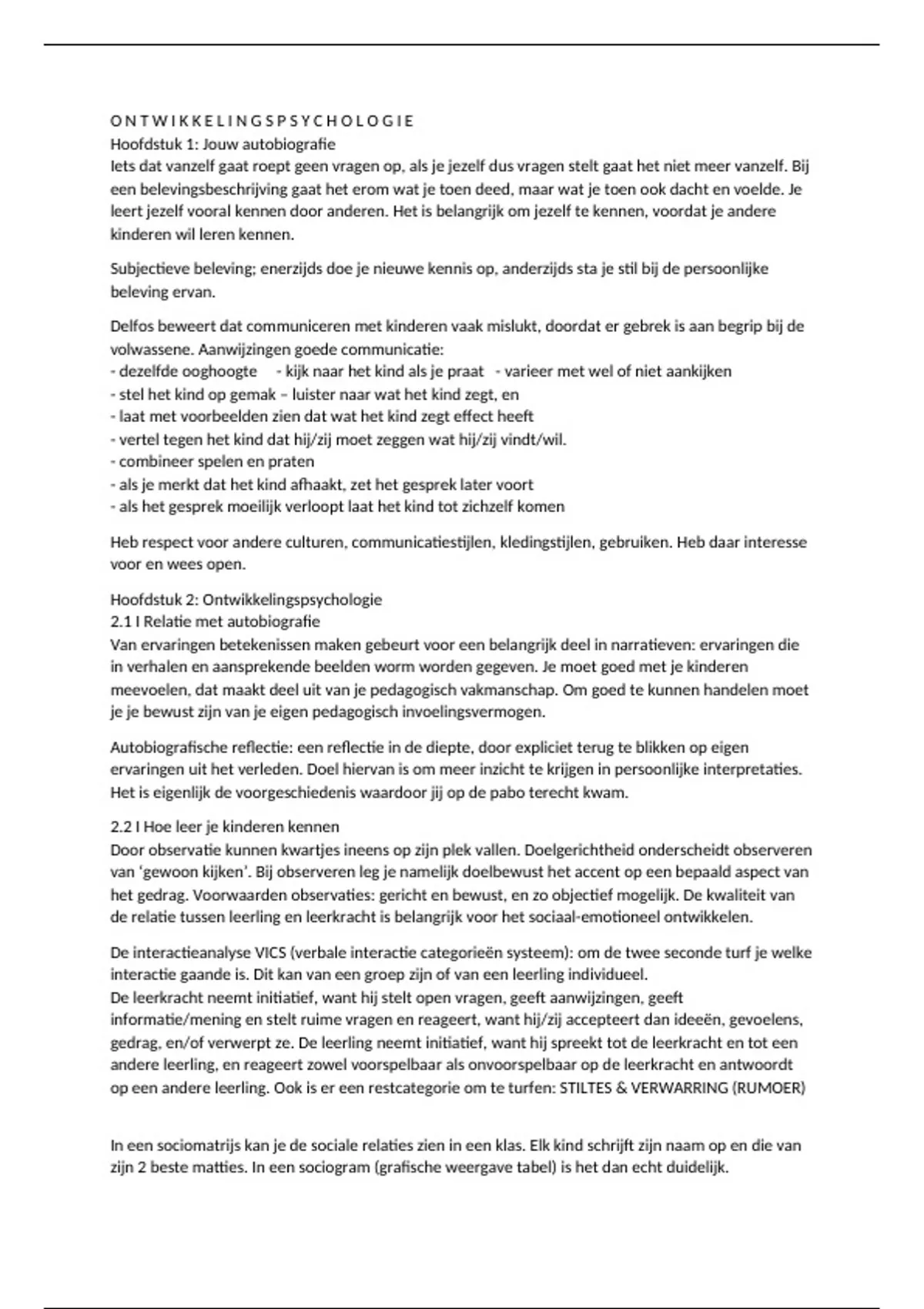 Dit is het tweede onderdeel van het vak; de ontwikkeling van het kind, dat in het eerste jaar op de hogeschool Viaa wordt gegeven. Dit document bevat een samenvatting van hoofdstuk 1 t/m 3.
