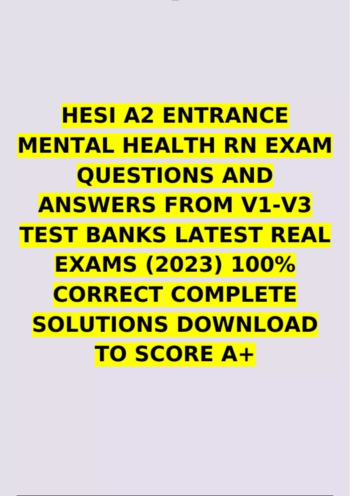 HESI A2 ENTRANCE MENTAL HEALTH RN EXAM QUESTIONS AND ANSWERS FROM V1-V3 TEST BANKS LATEST REAL EXAMS (2023) 100% CORRECT COMPLETE SOLUTIONS DOWNLOAD TO SCORE A+
