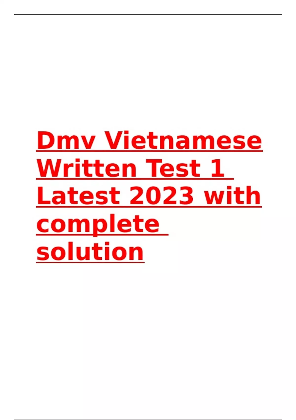 Dmv Vietnamese Written Test 1 Latest 2023 with complete solution