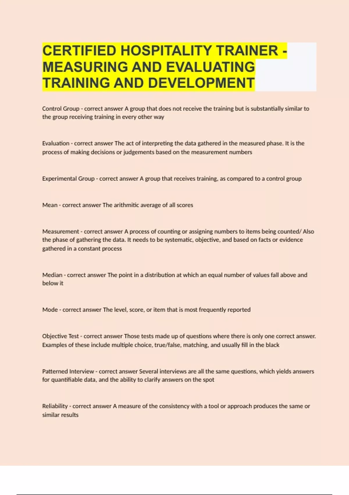 CERTIFIED HOSPITALITY TRAINER - MEASURING AND EVALUATING TRAINING AND DEVELOPMENT|2023/24 UPDATE|GRADED A+