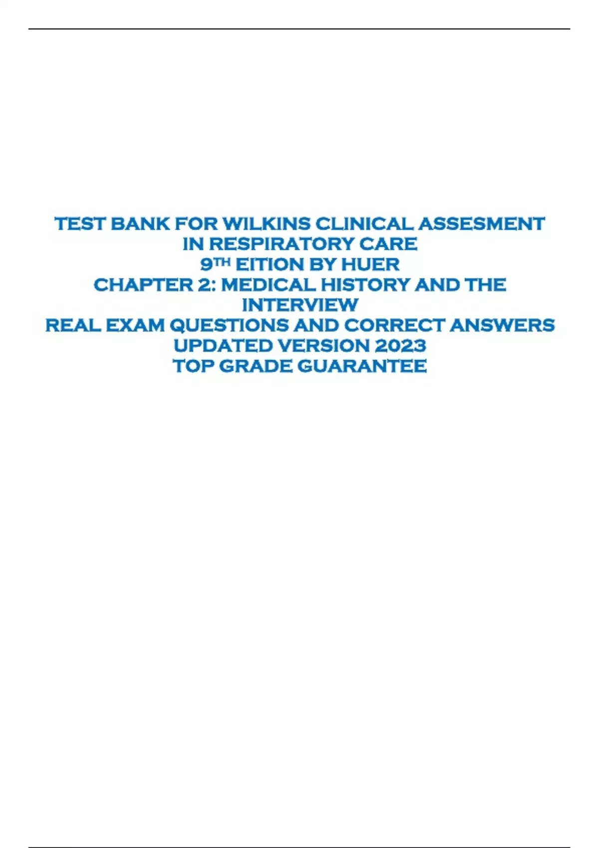 TEST BANK FOR WILKINS CLINICAL ASSESMENT