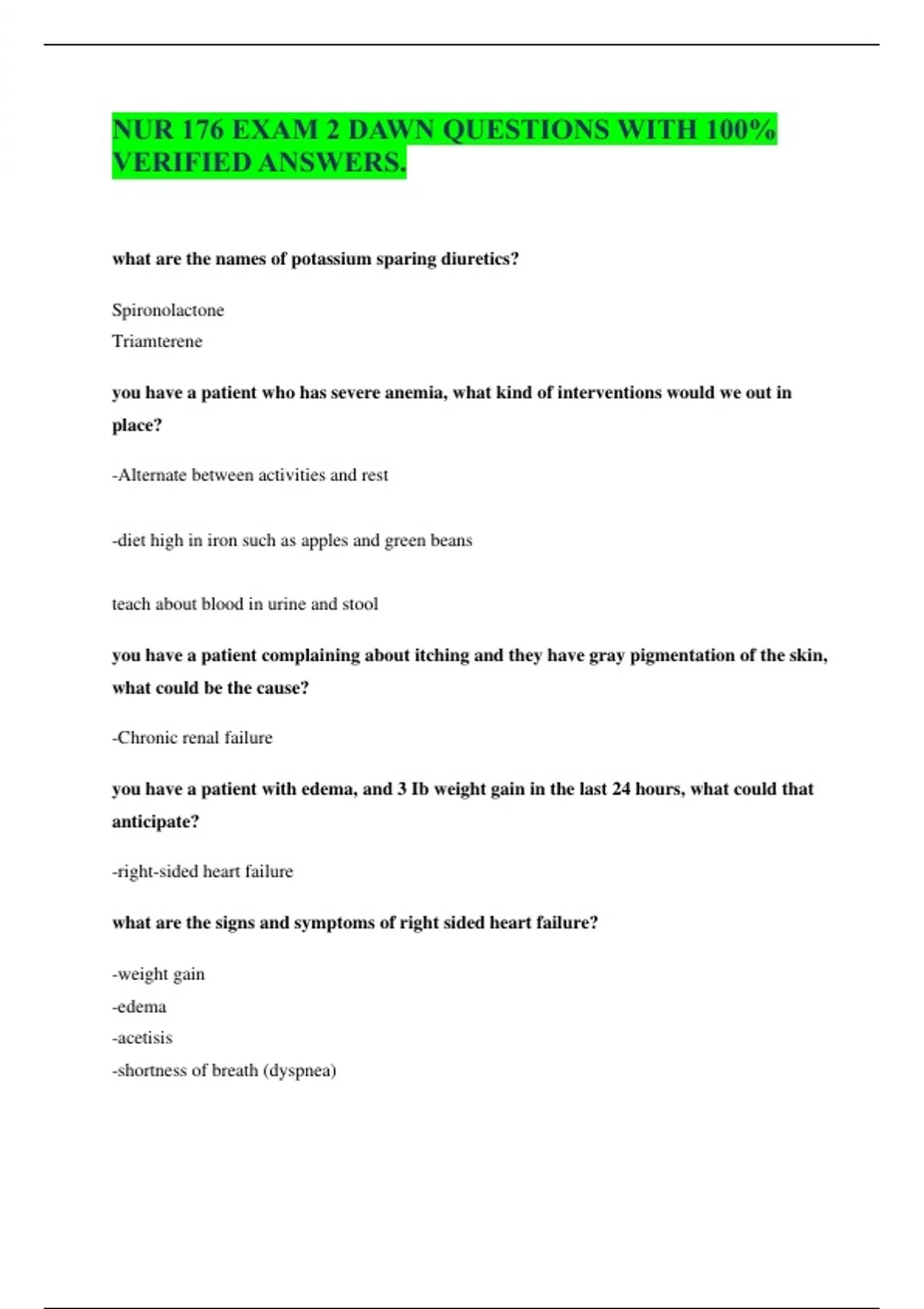 NUR 176 EXAM 2 DAWN QUESTIONS WITH 100% VERIFIED ANSWERS.