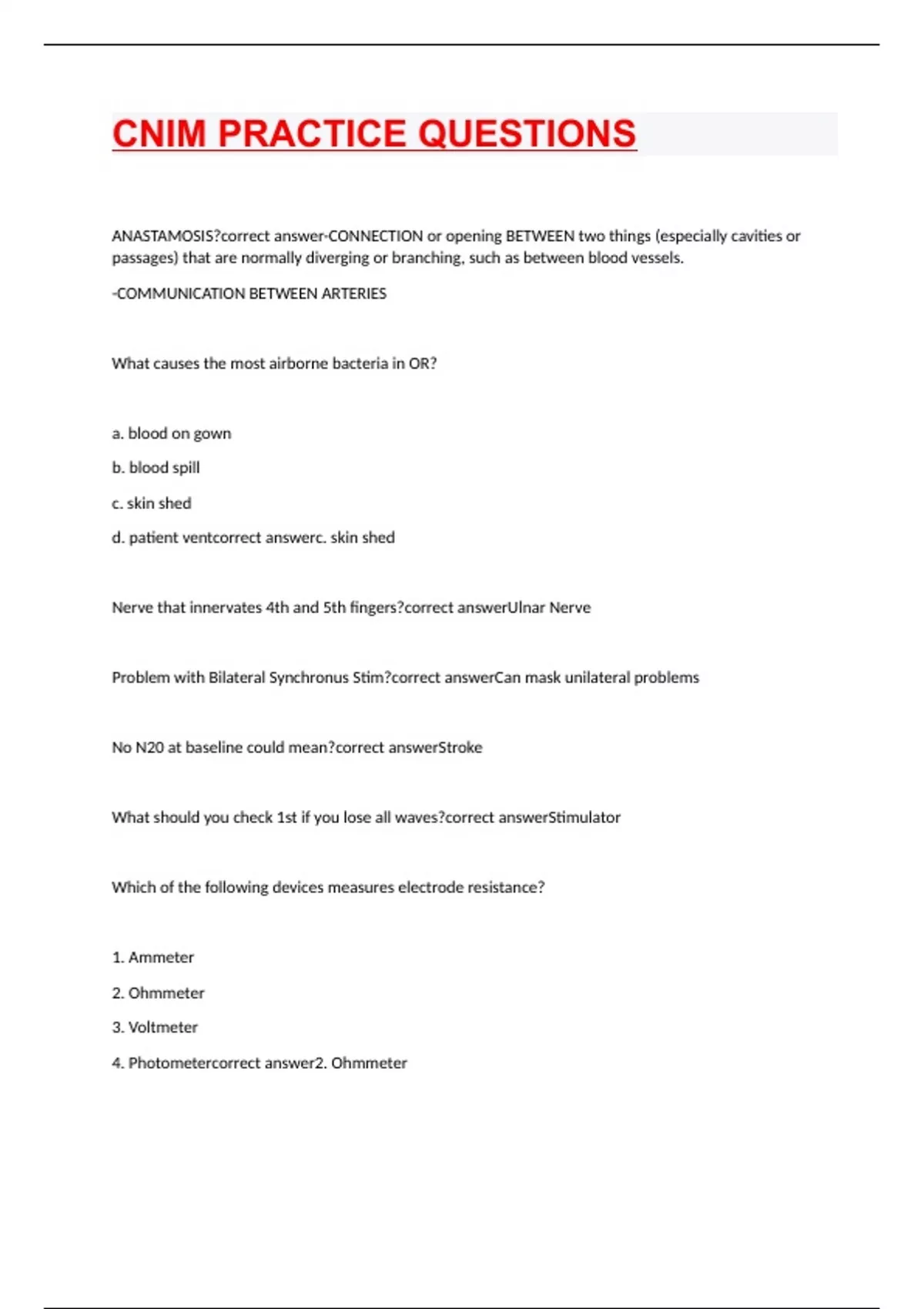 CNIM PRACTICE QUESTIONS WITH CORRECT ANSWERS