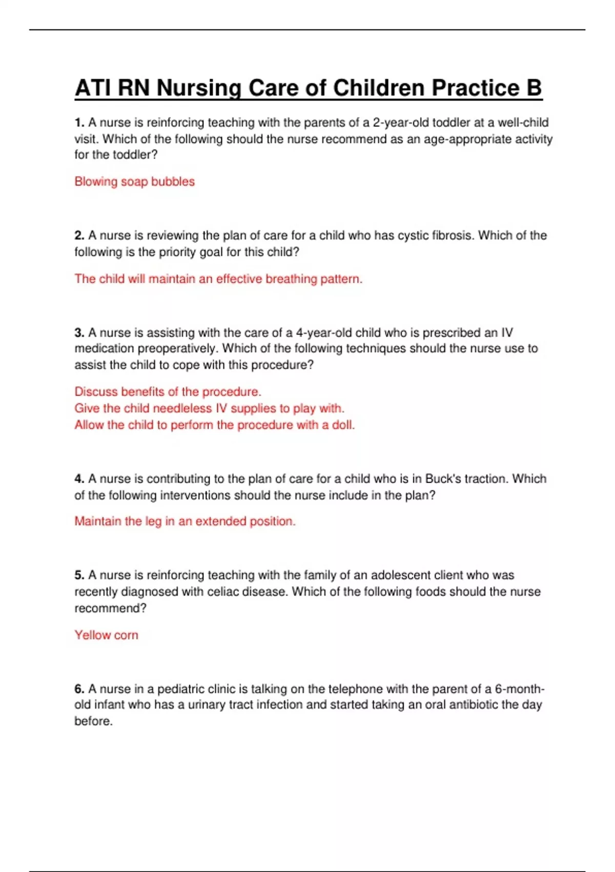 ATI RN NURSING CARE OF CHILDREN PRACTICE B. QUESTIONS AND ANSWERS.