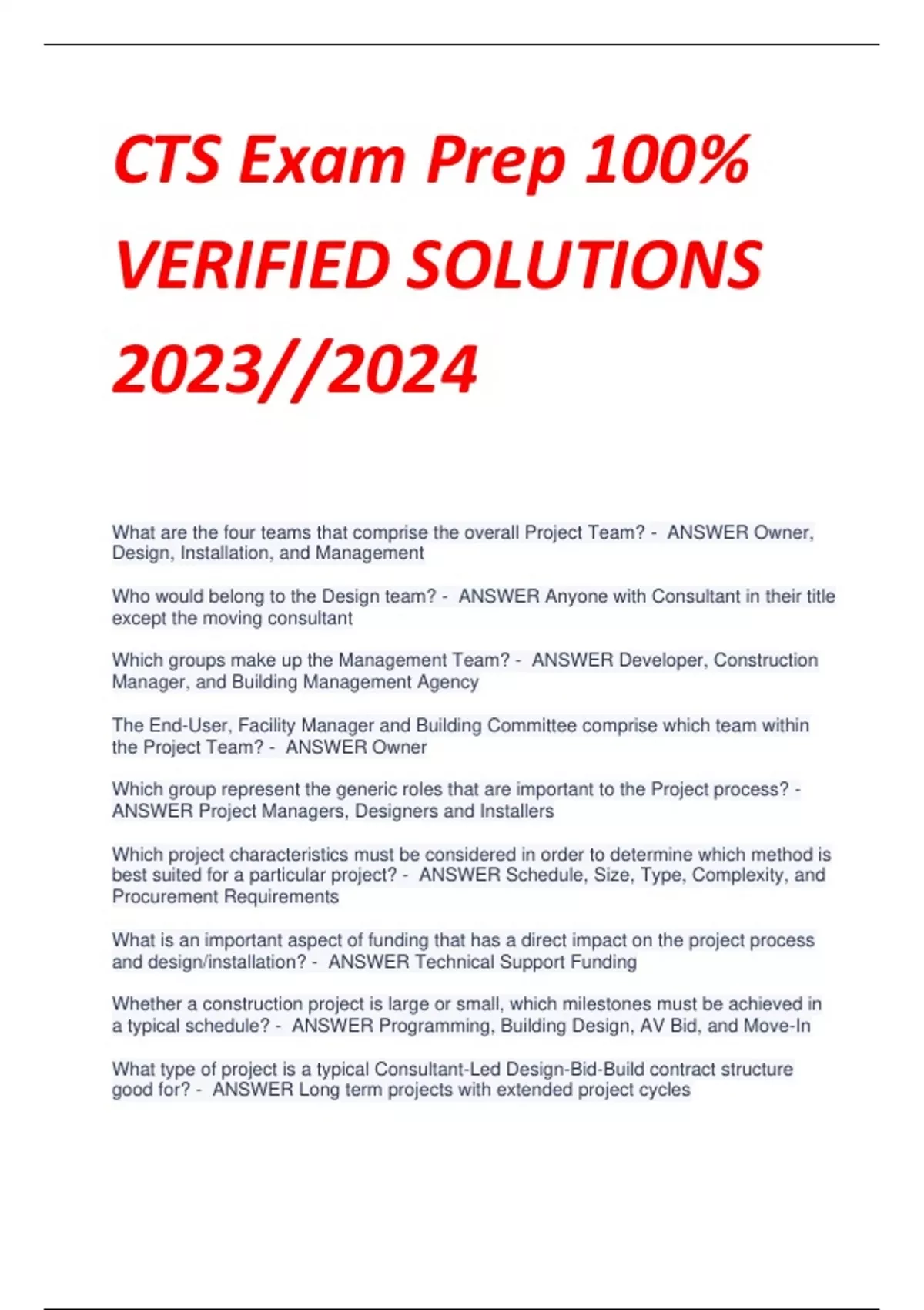 - CTS Prep 100% VERIFIED 2023//2024