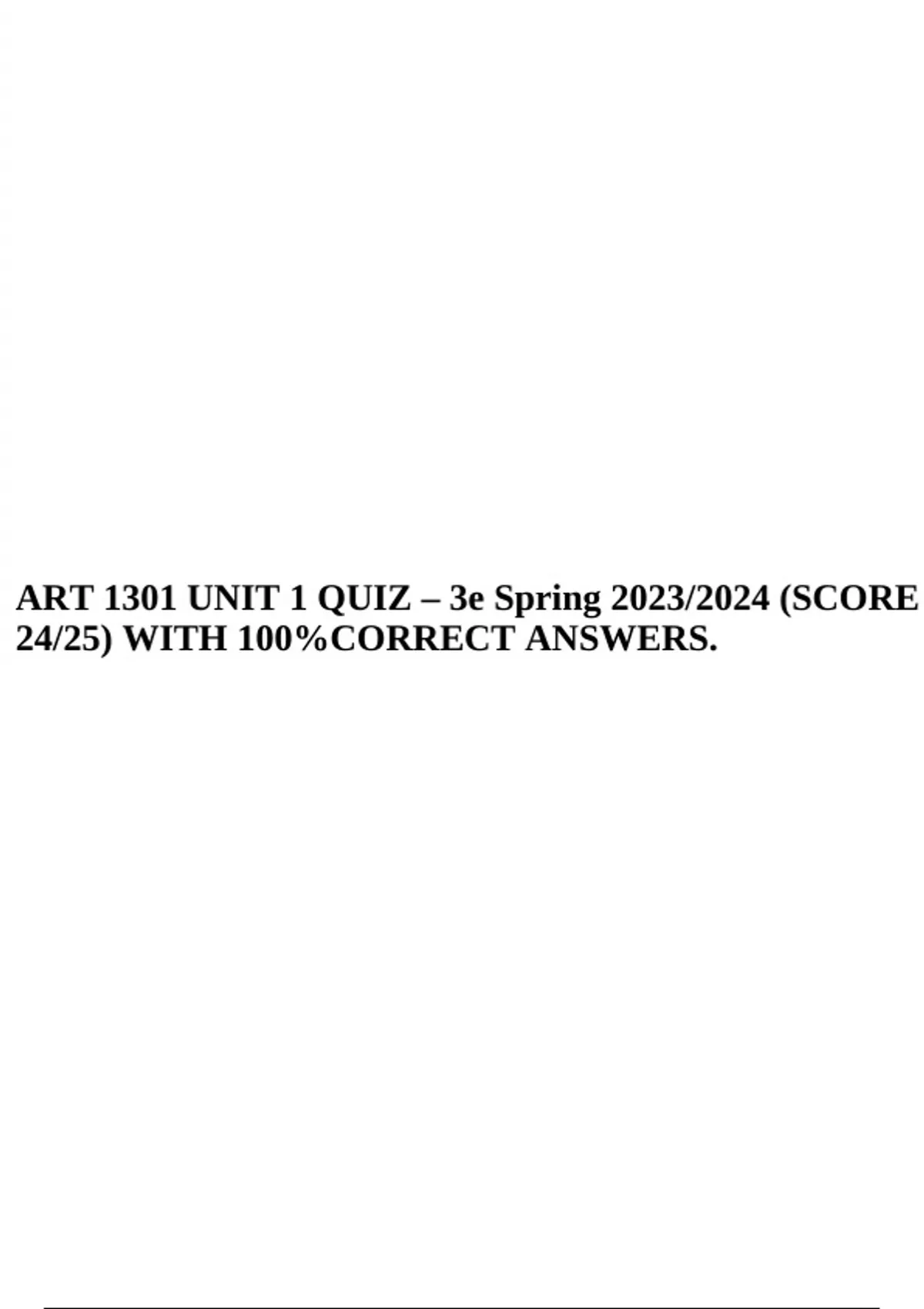 ART 1301 UNIT 1 QUIZ – 3e Spring 2023/2024 (SCORE 24/25) WITH 100%CORRECT ANSWERS.